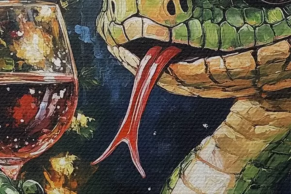 Foto Una serpiente con un vaso de vino celebra el año nuevo Nr r42106