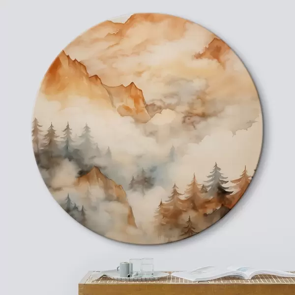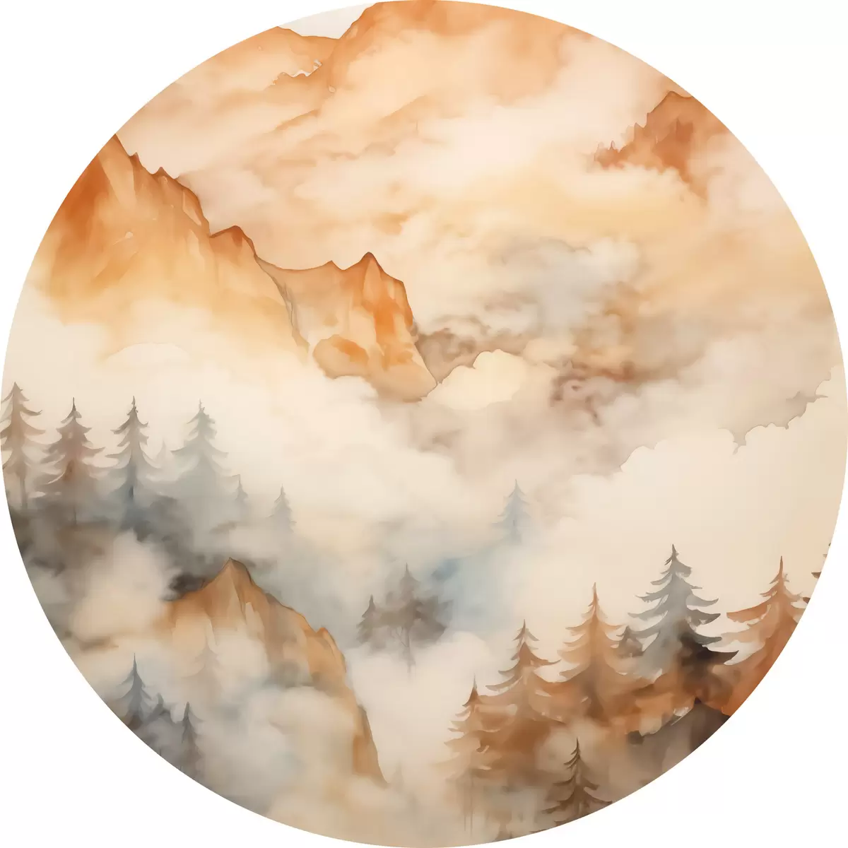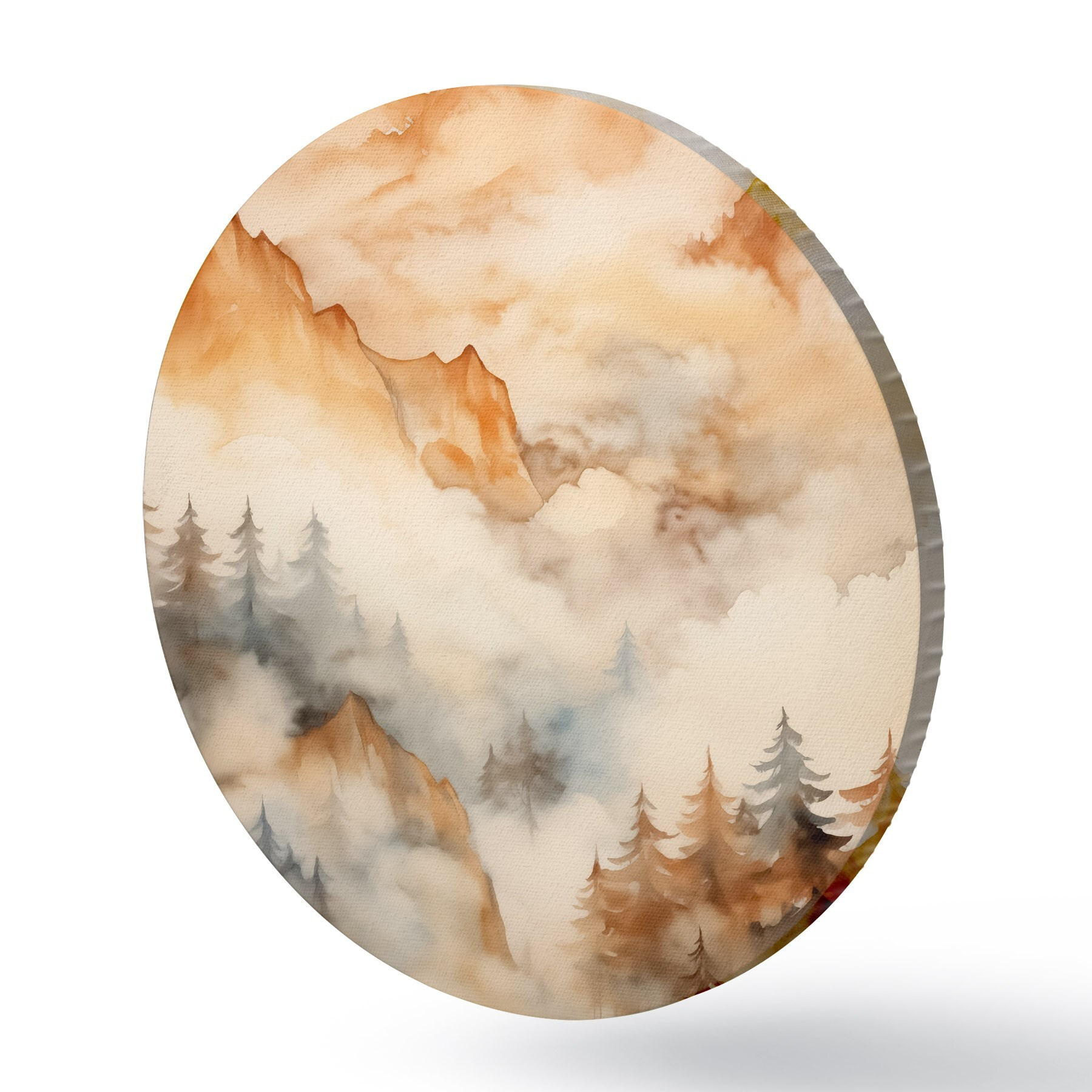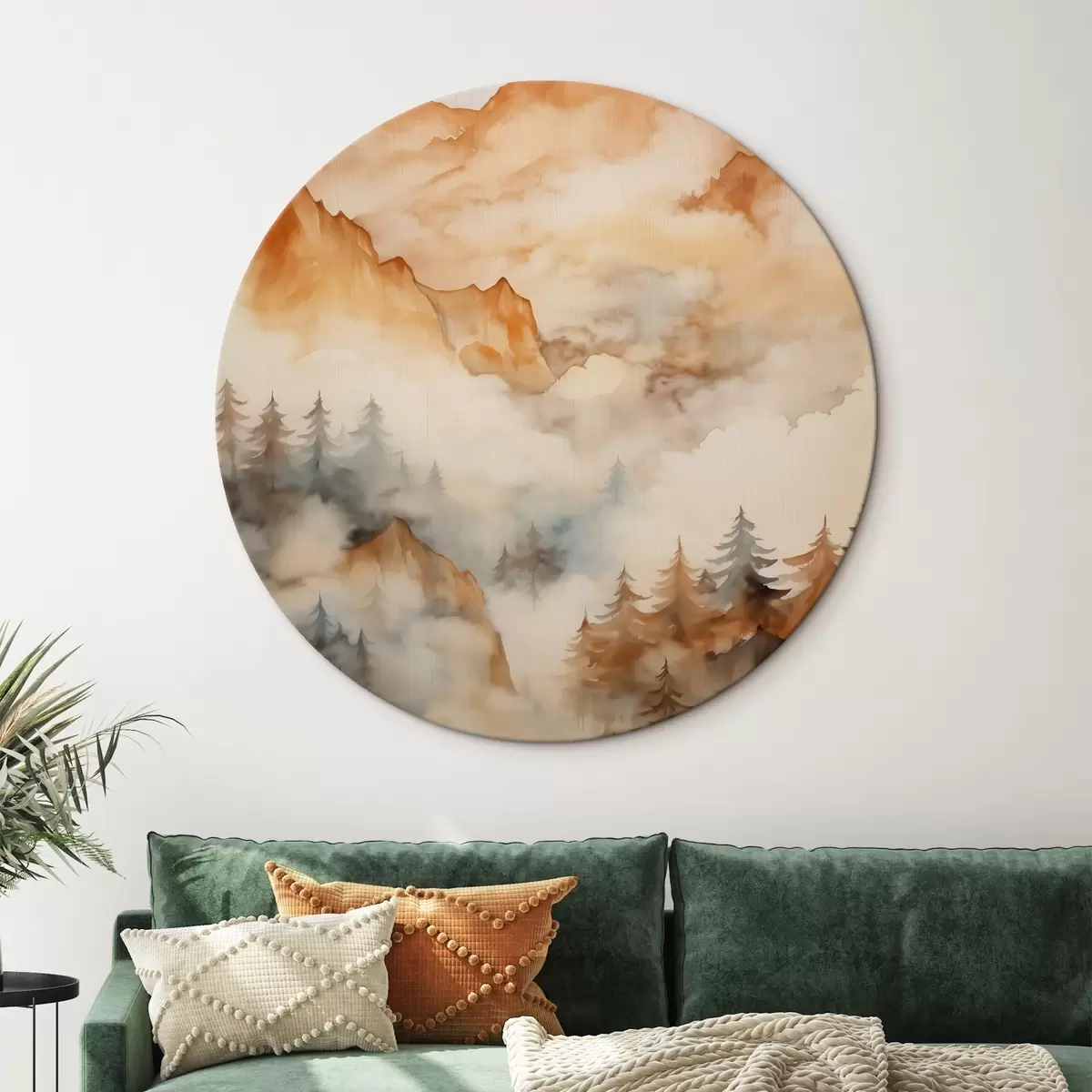 Cuadros redondos Bosque y montañas imitación de acuarela, tonos anaranjados r42119