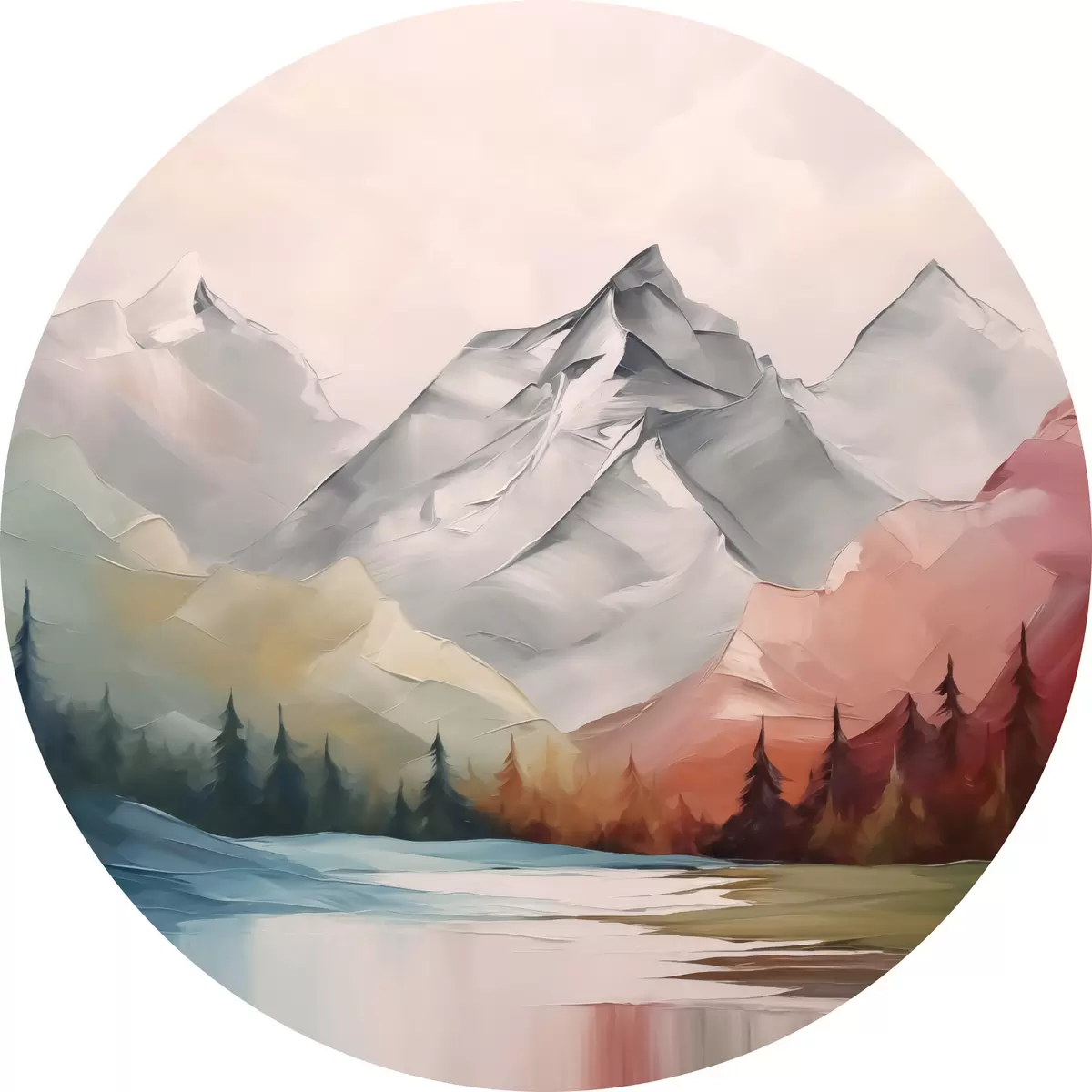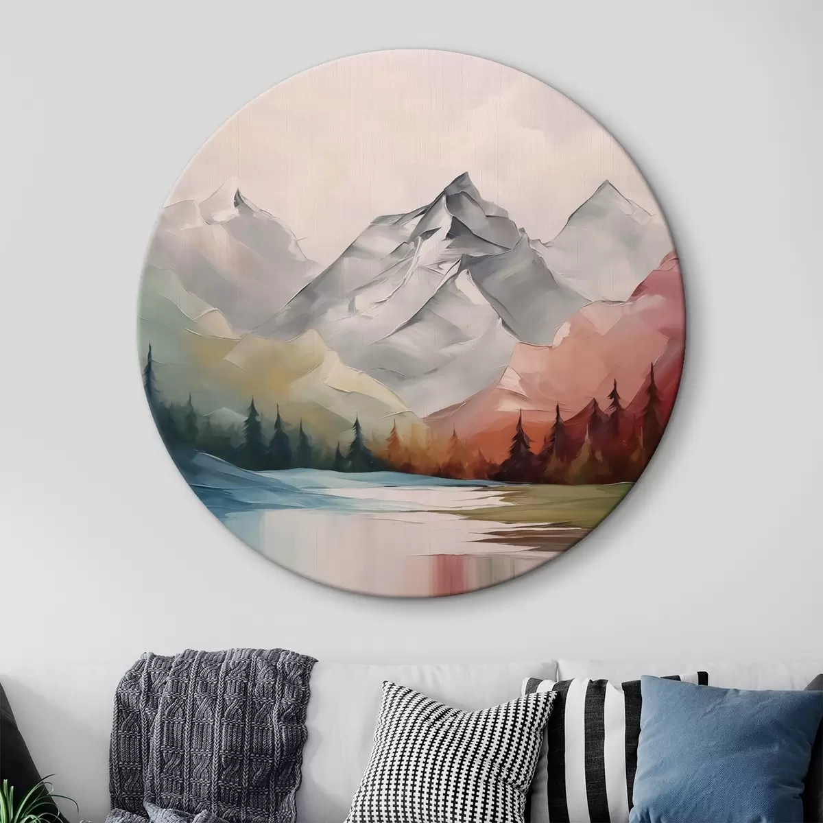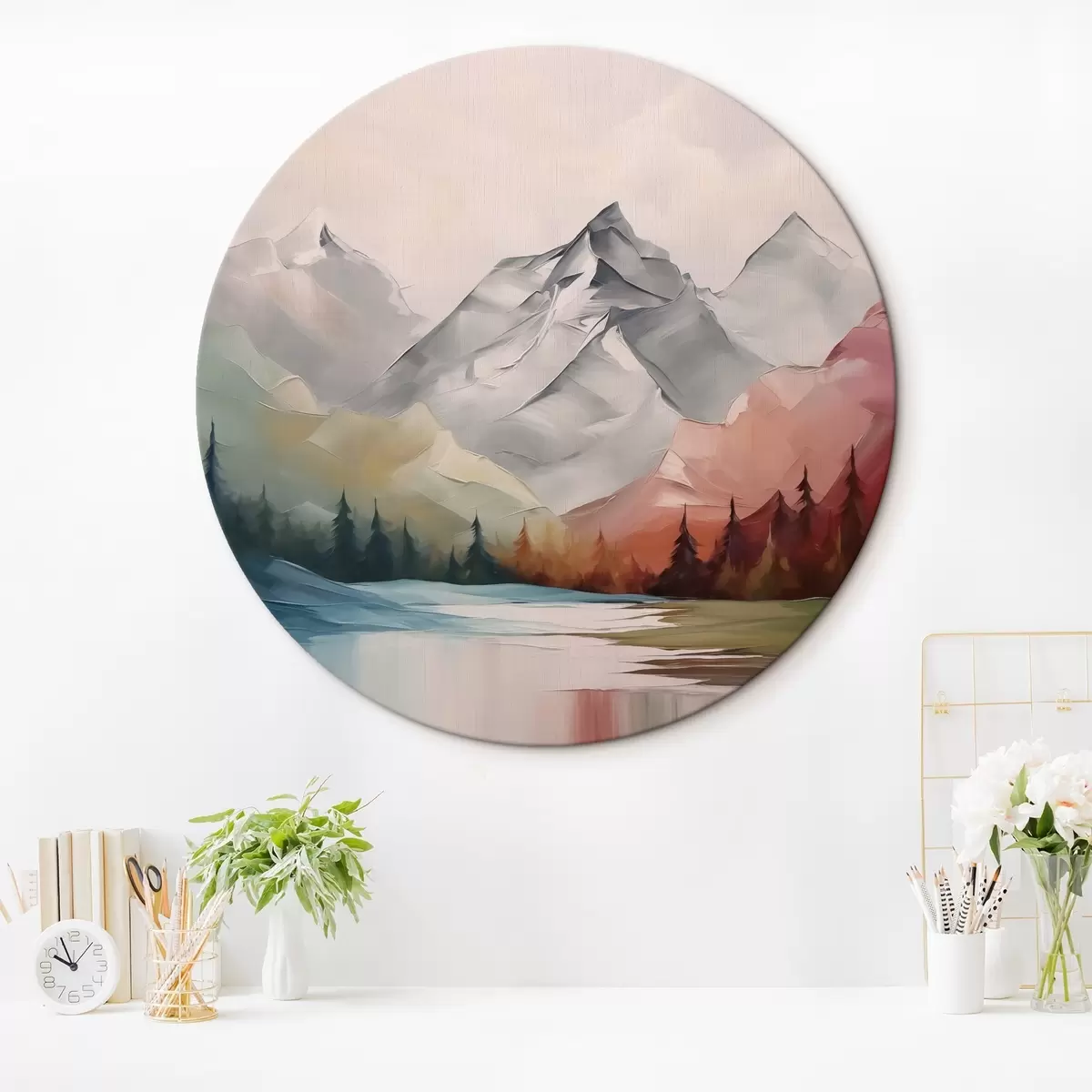 Cuadros redondos Montañas y bosque imitación de pintura r42128