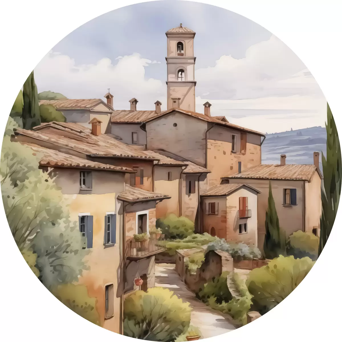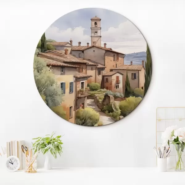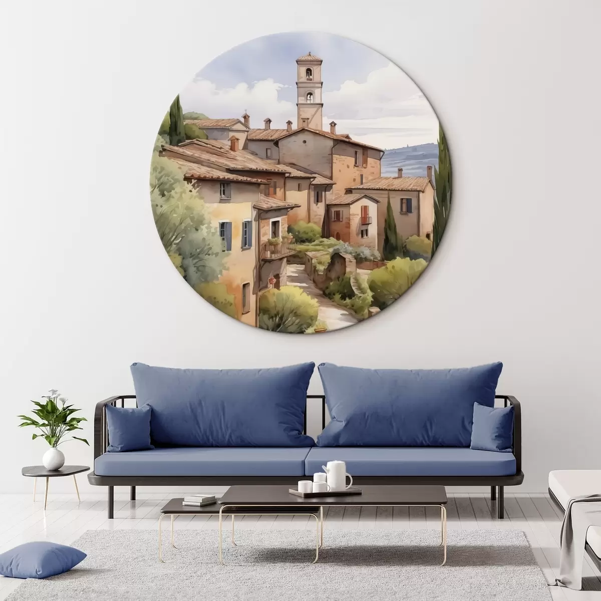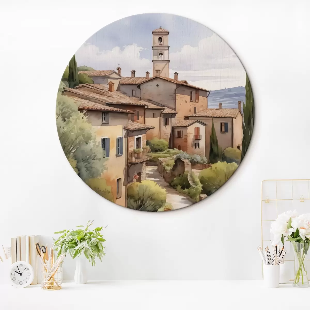 Cuadros redondos Acuarela imitación de calle de barrio italiano r42135