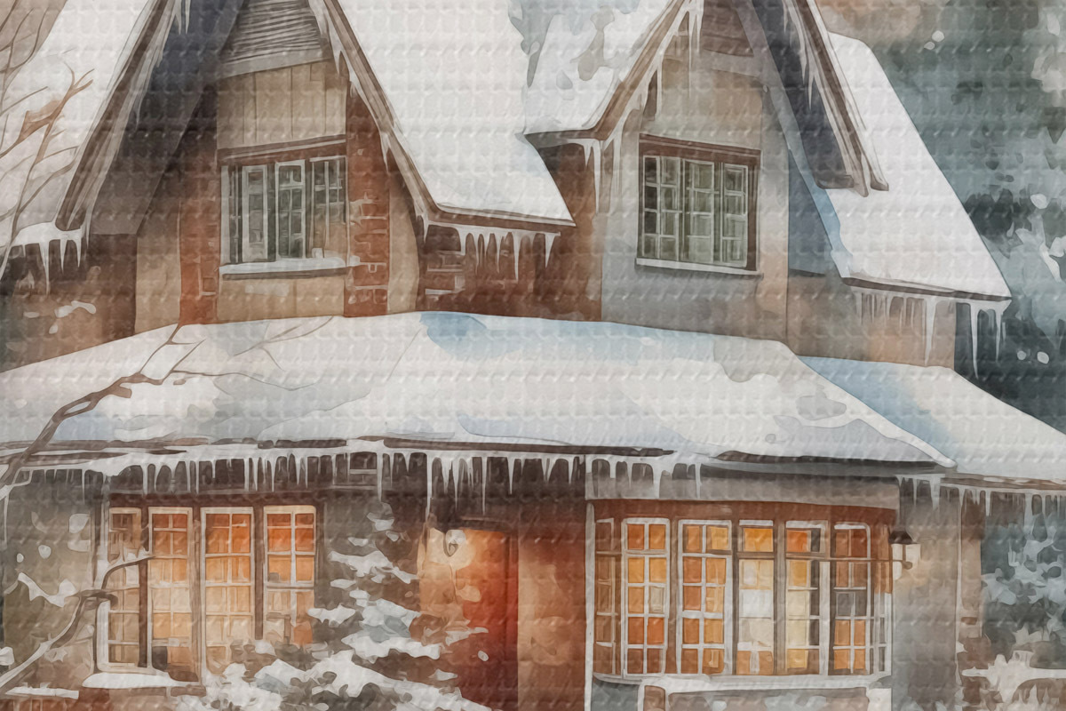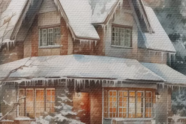 Foto Casa en un bosque nevado imitación acuarela Nr r42137