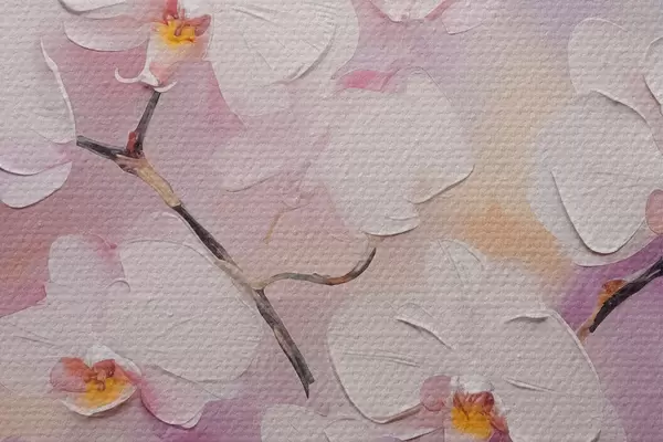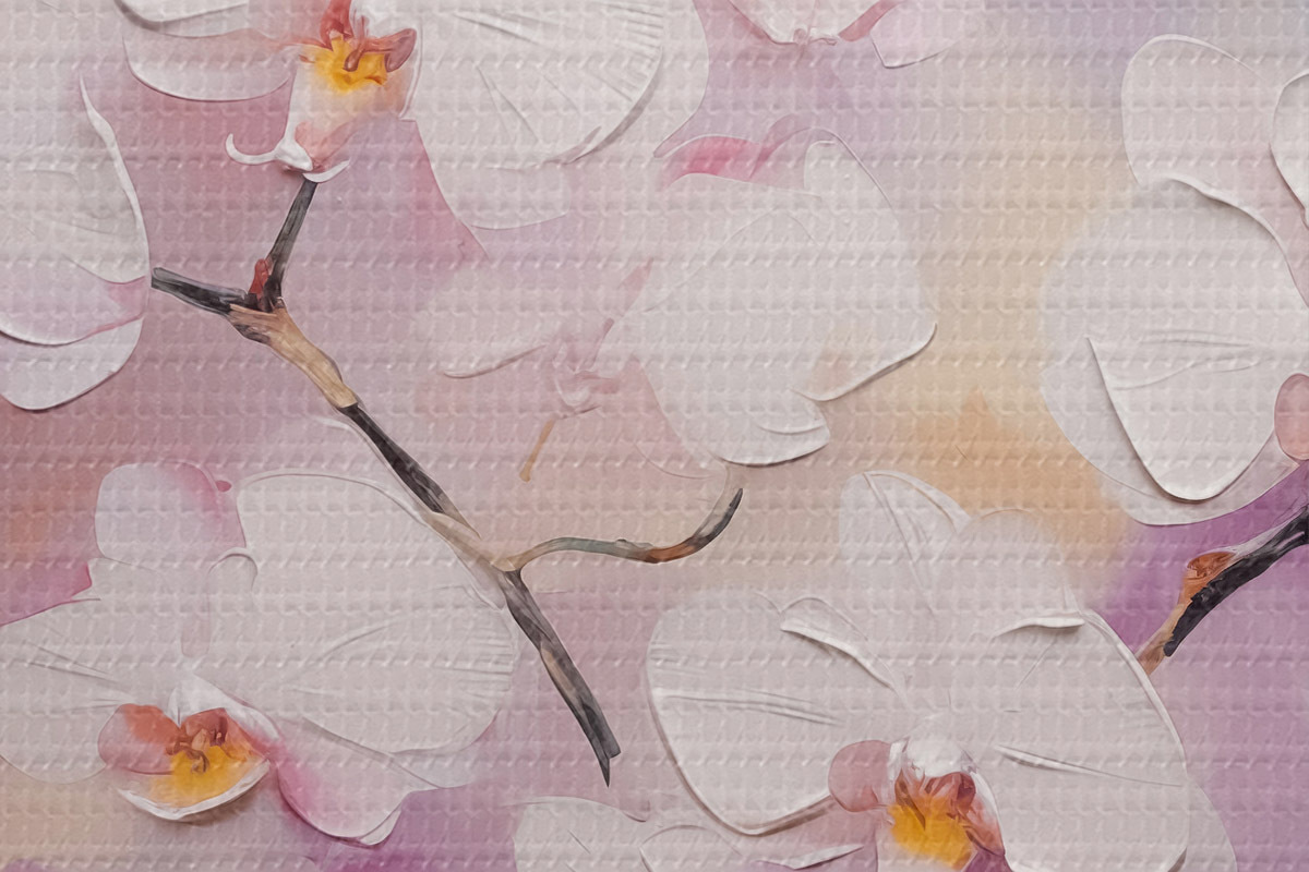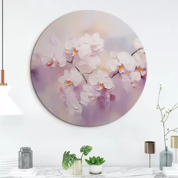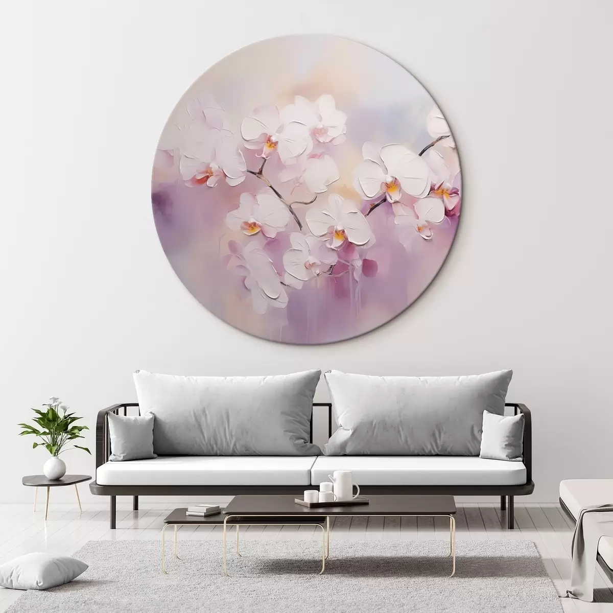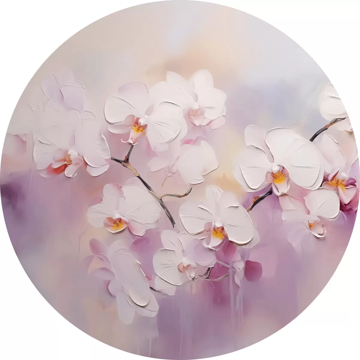 Cuadros redondos Rama con orquídeas blancas imitación de pintura r42141