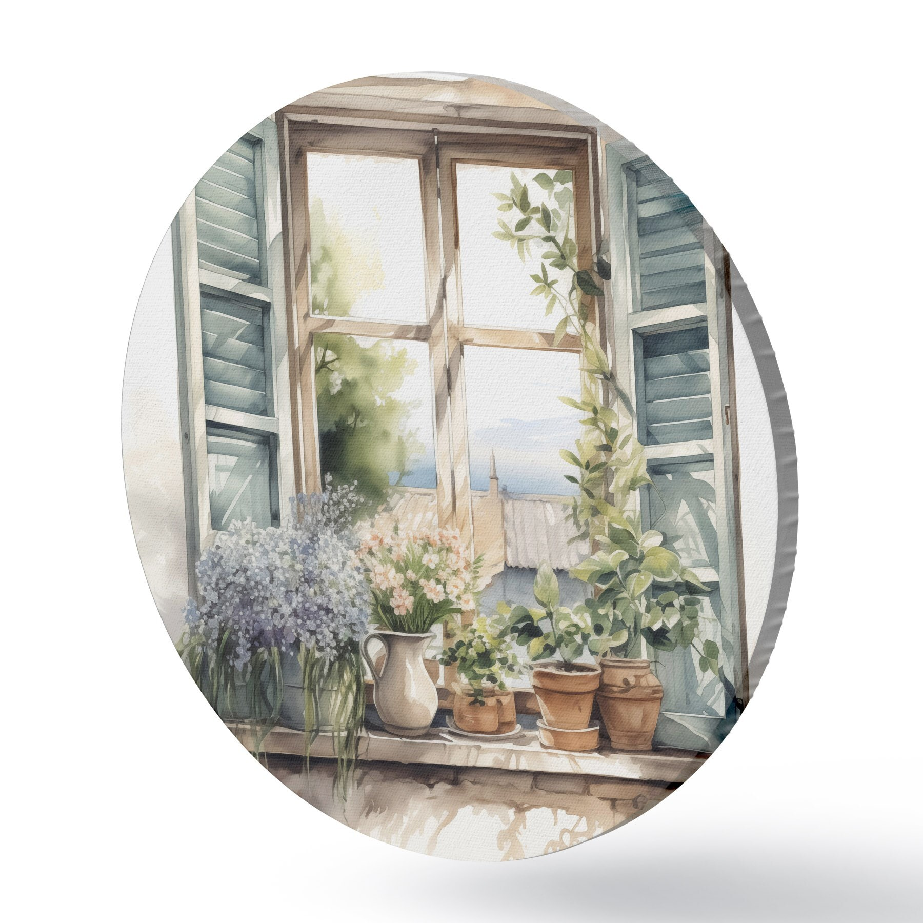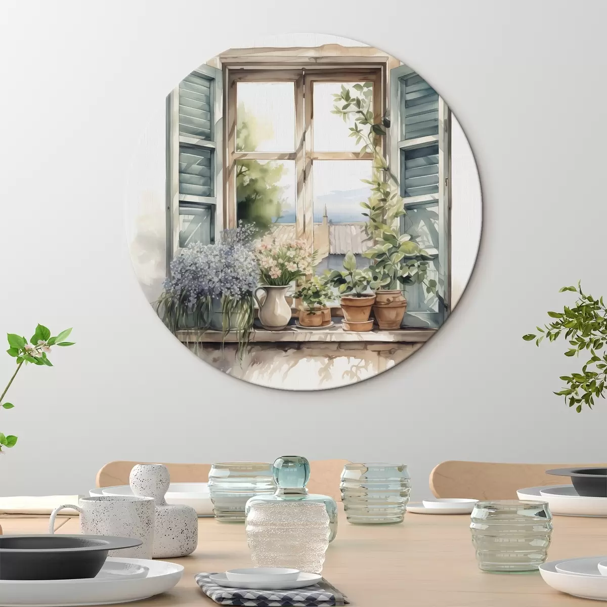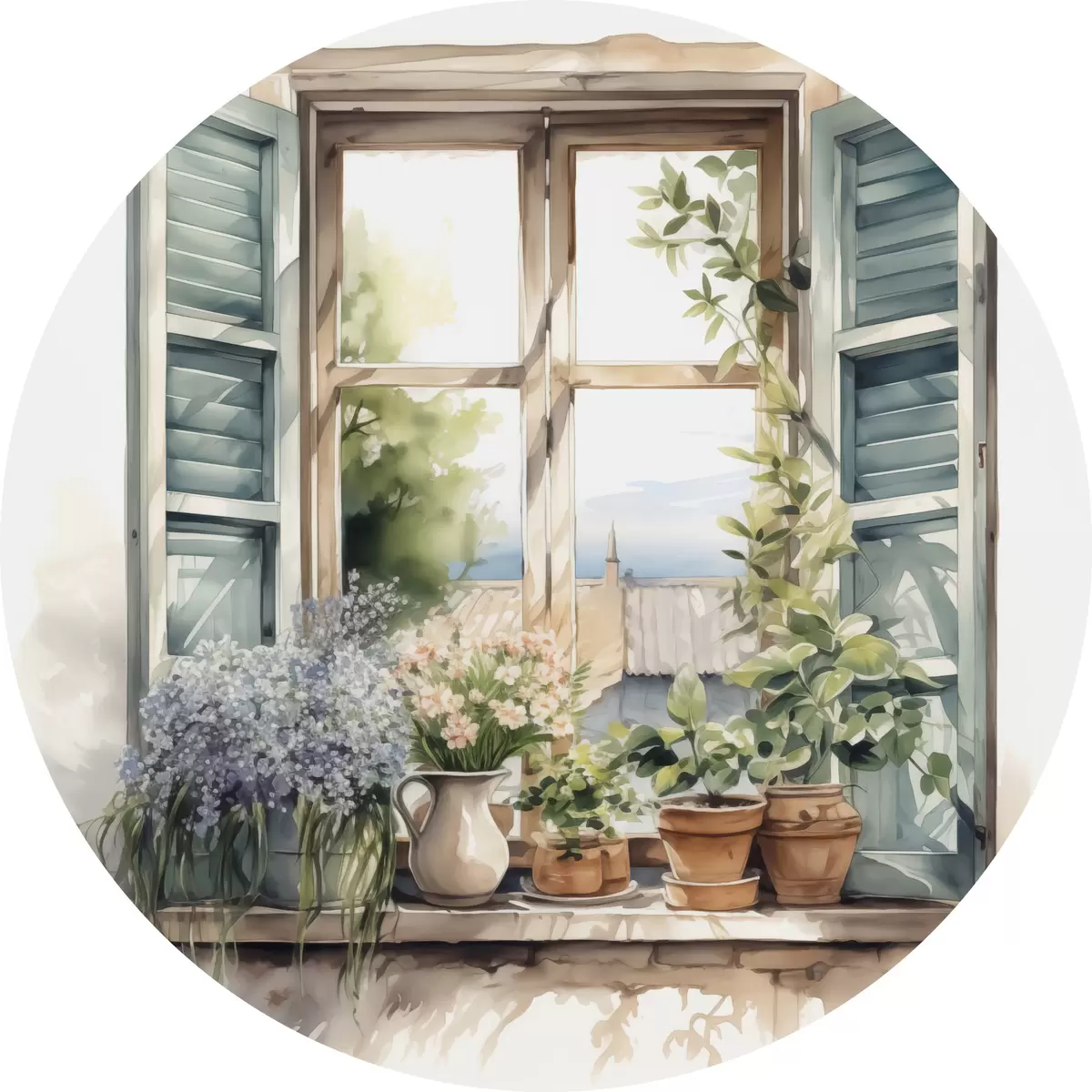 Cuadros redondos Vegetación en el alféizar de la ventana imitación de acuarela r42144