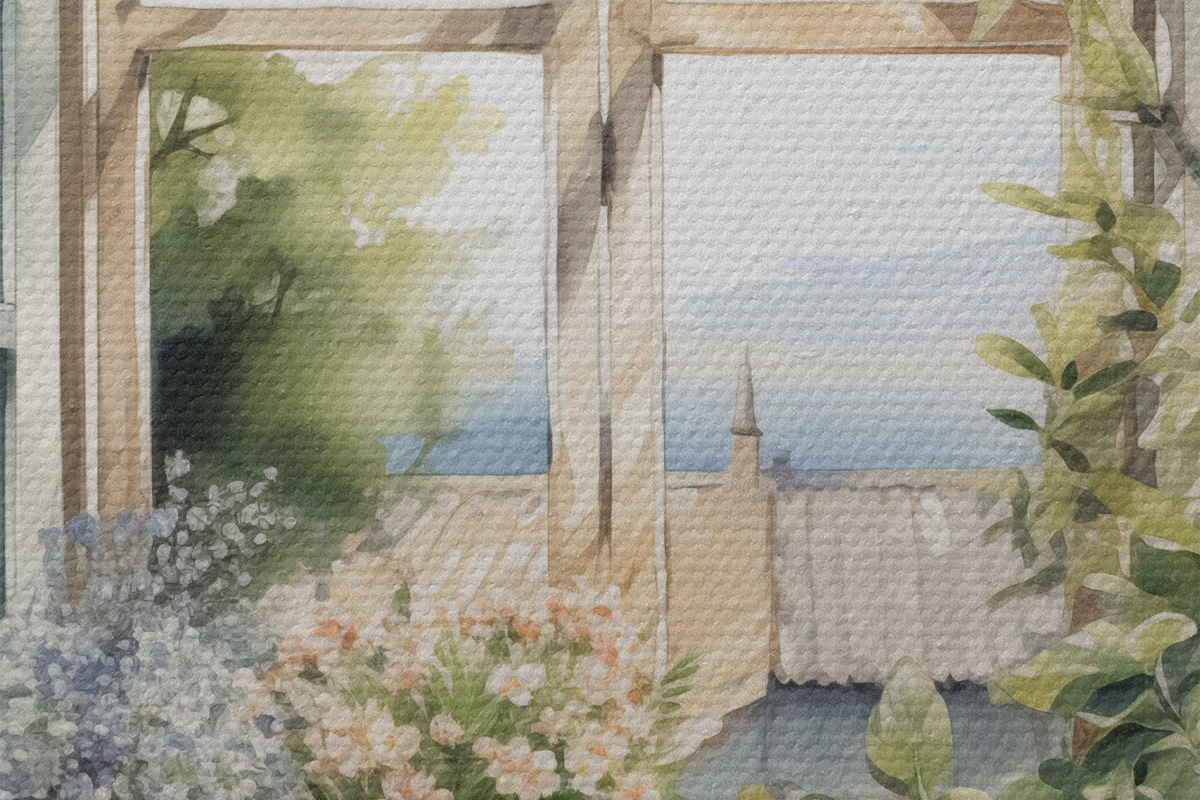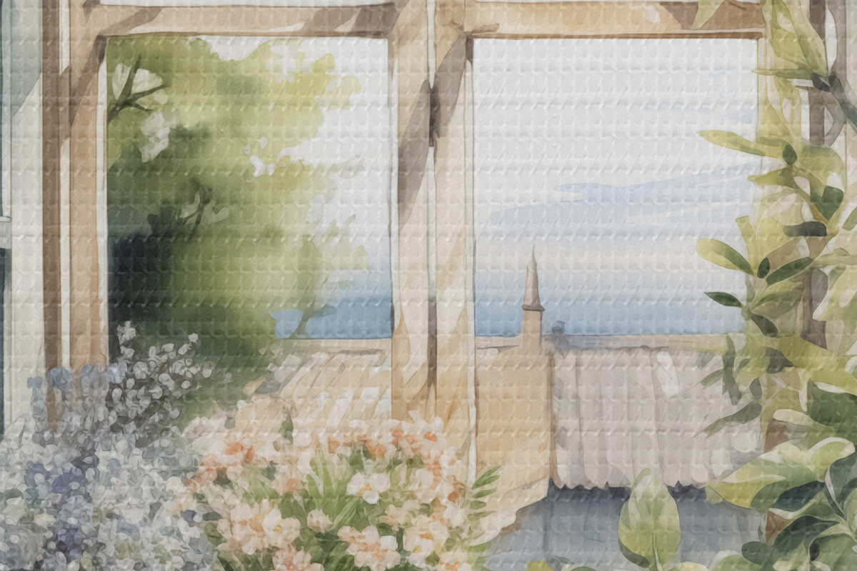 Foto Vegetación en el alféizar de la ventana imitación de acuarela Nr r42144