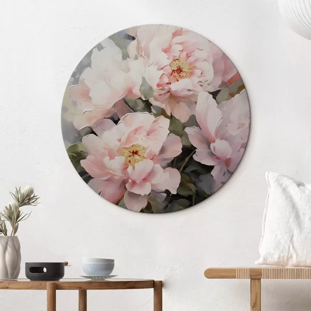 Cuadros redondos Pintura imitación peonías rosas r42147