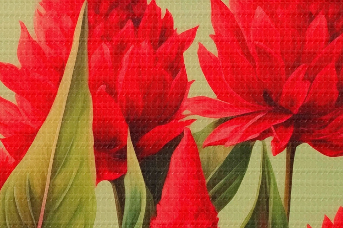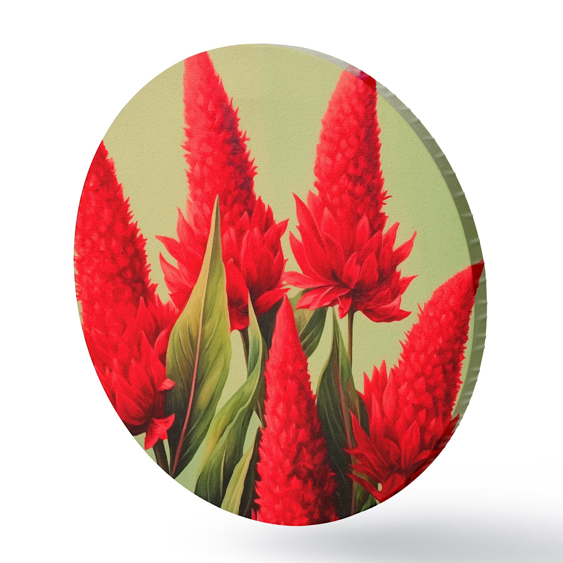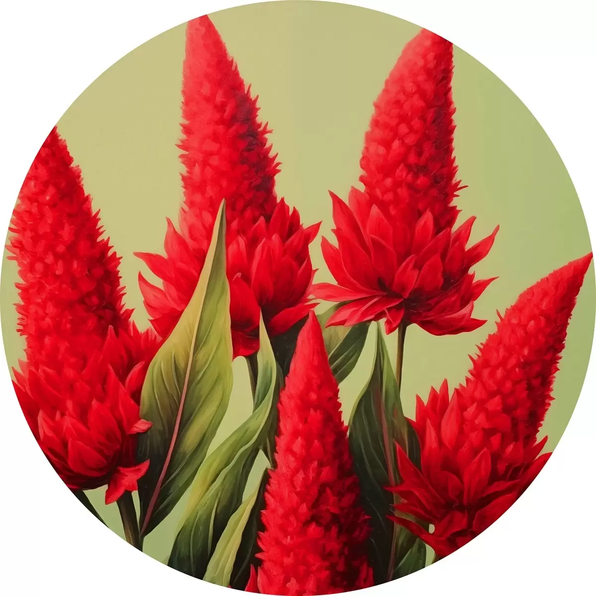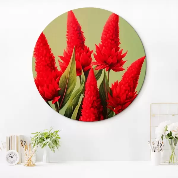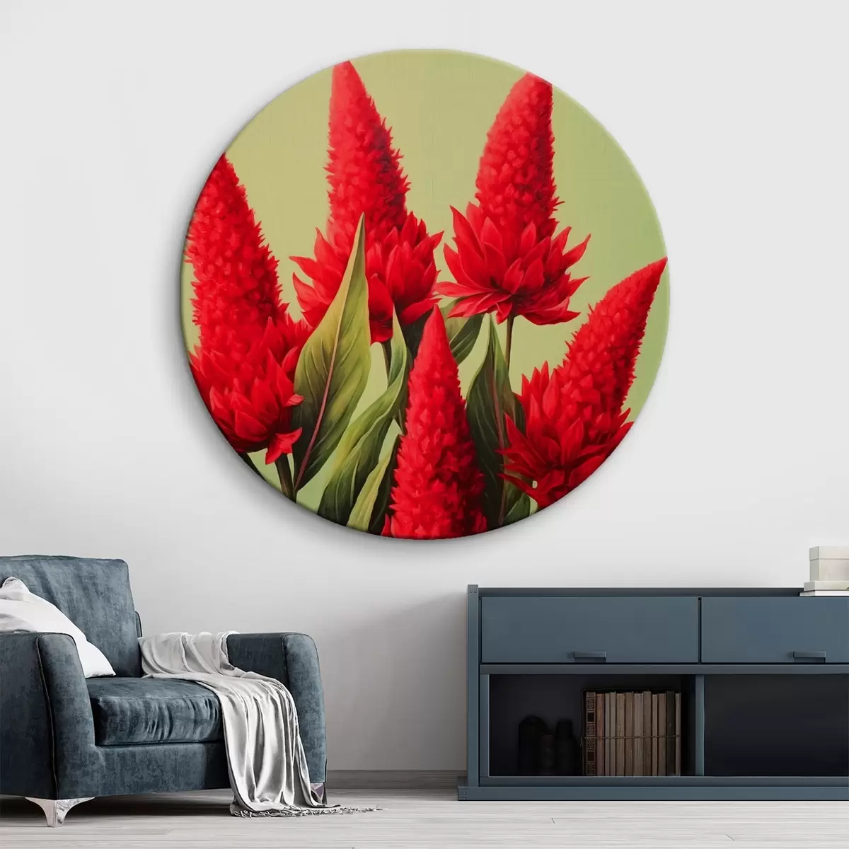 Cuadros redondos Flores rojas sobre fondo verde r42166
