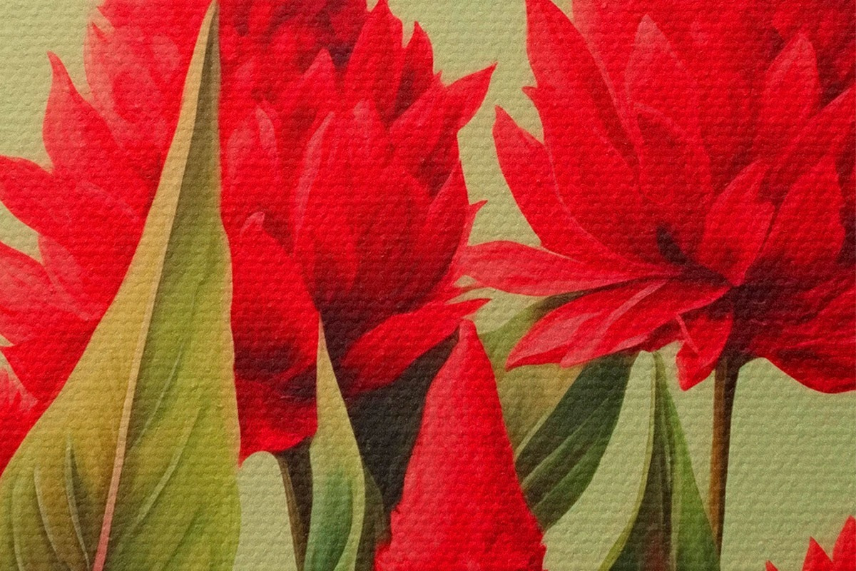 Hay tres tipos de material disponibles para pedidos: Lienzo Económico - material denso y duradero para impresión digital, idéntico al lienzo de pintor, superficie impermeable, reproducción realista de los detalles, material de grano medio. Lienzo Premium - la textura se asemeja a la de un lienzo de pintor (pequeños hilos entrelazados). Reproducción suave y detallada de la imagen sobre una superficie mate. Eco-Premium - tejido 100% algodón de alta calidad. Gracias a las fibras naturales de algodón, el material es duradero y resistente al desgaste. Excelente reproducción del color y el detalle.