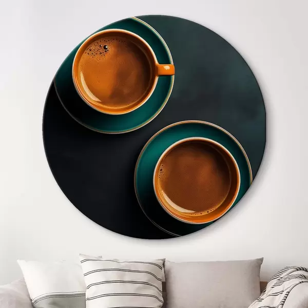 Cuadros redondos Dos tazas de café sobre fondo oscuro r42190