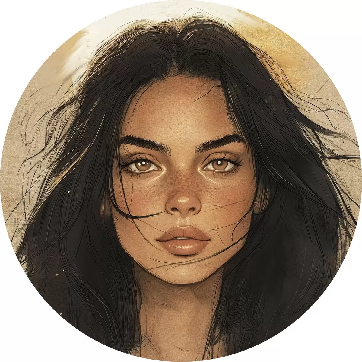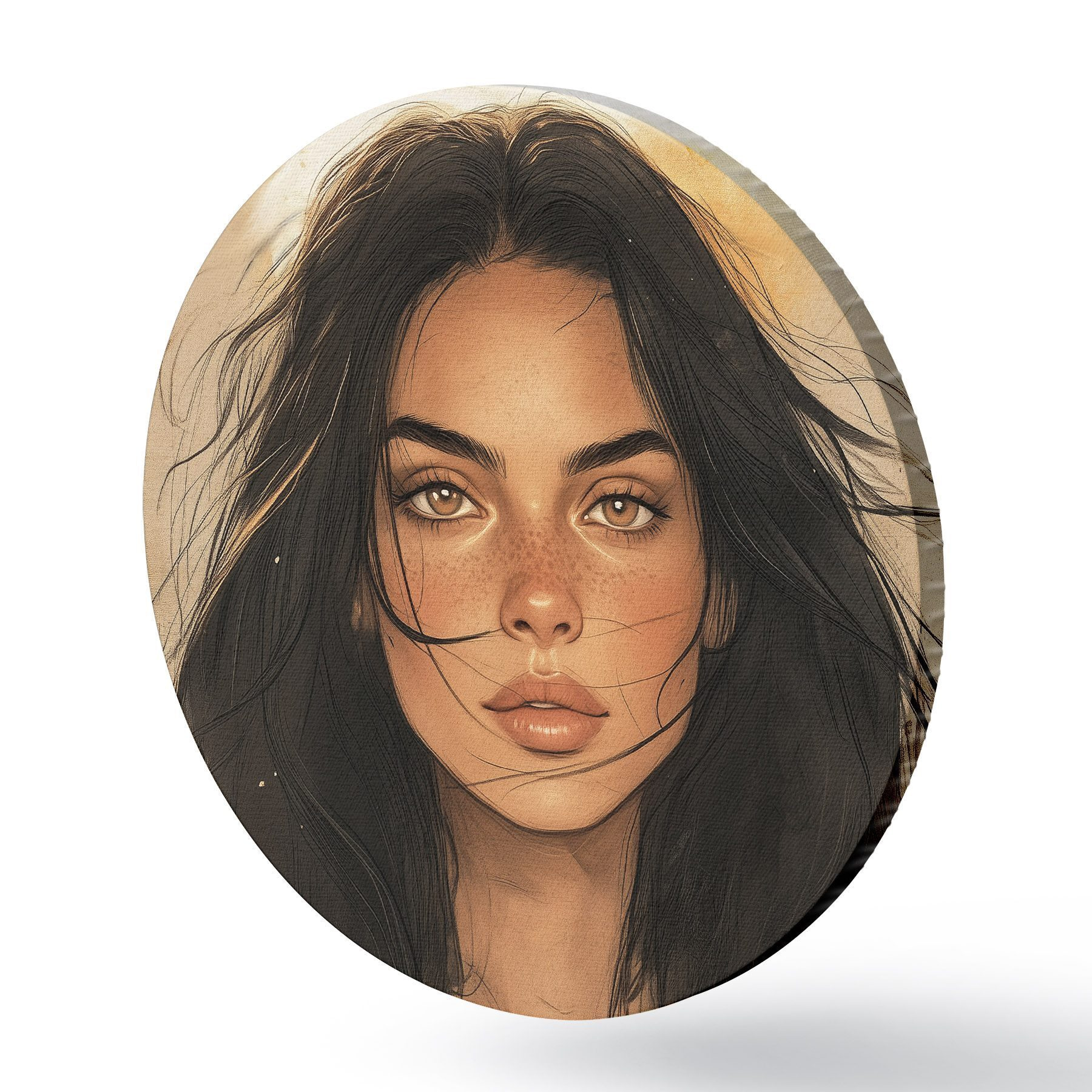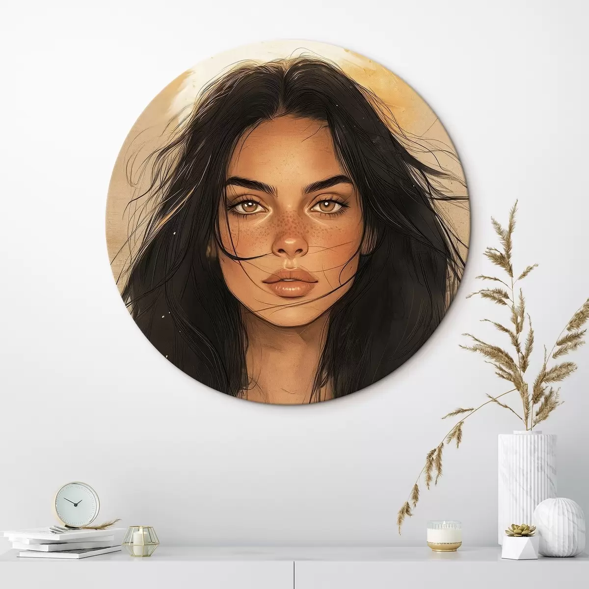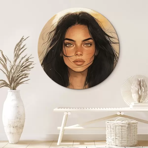 Cuadros redondos Retrato de mujer, estilo tribal, colores beige r42197