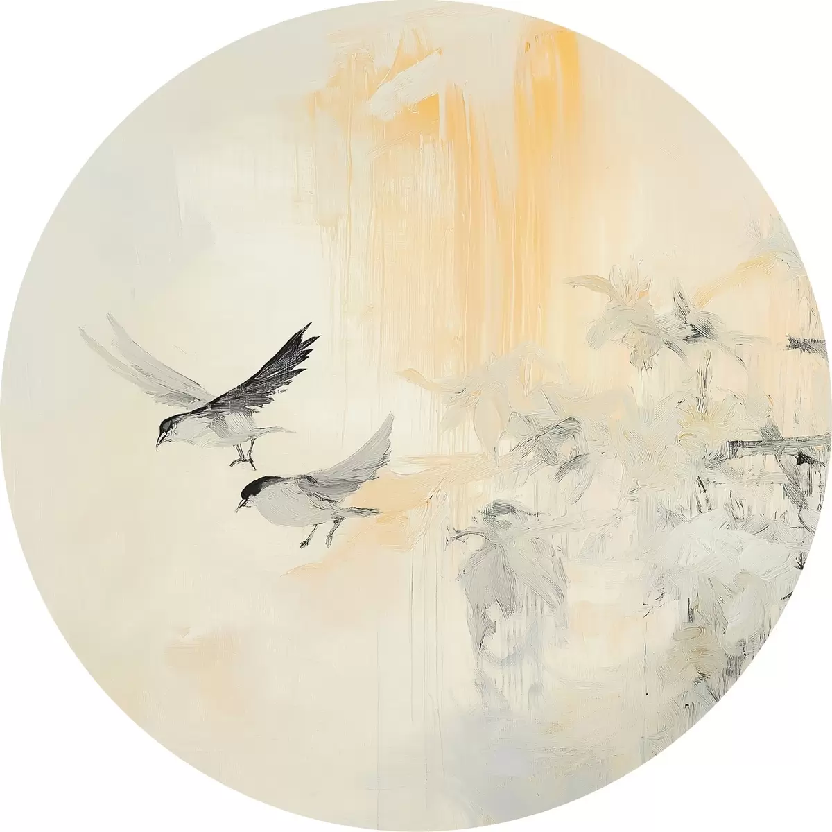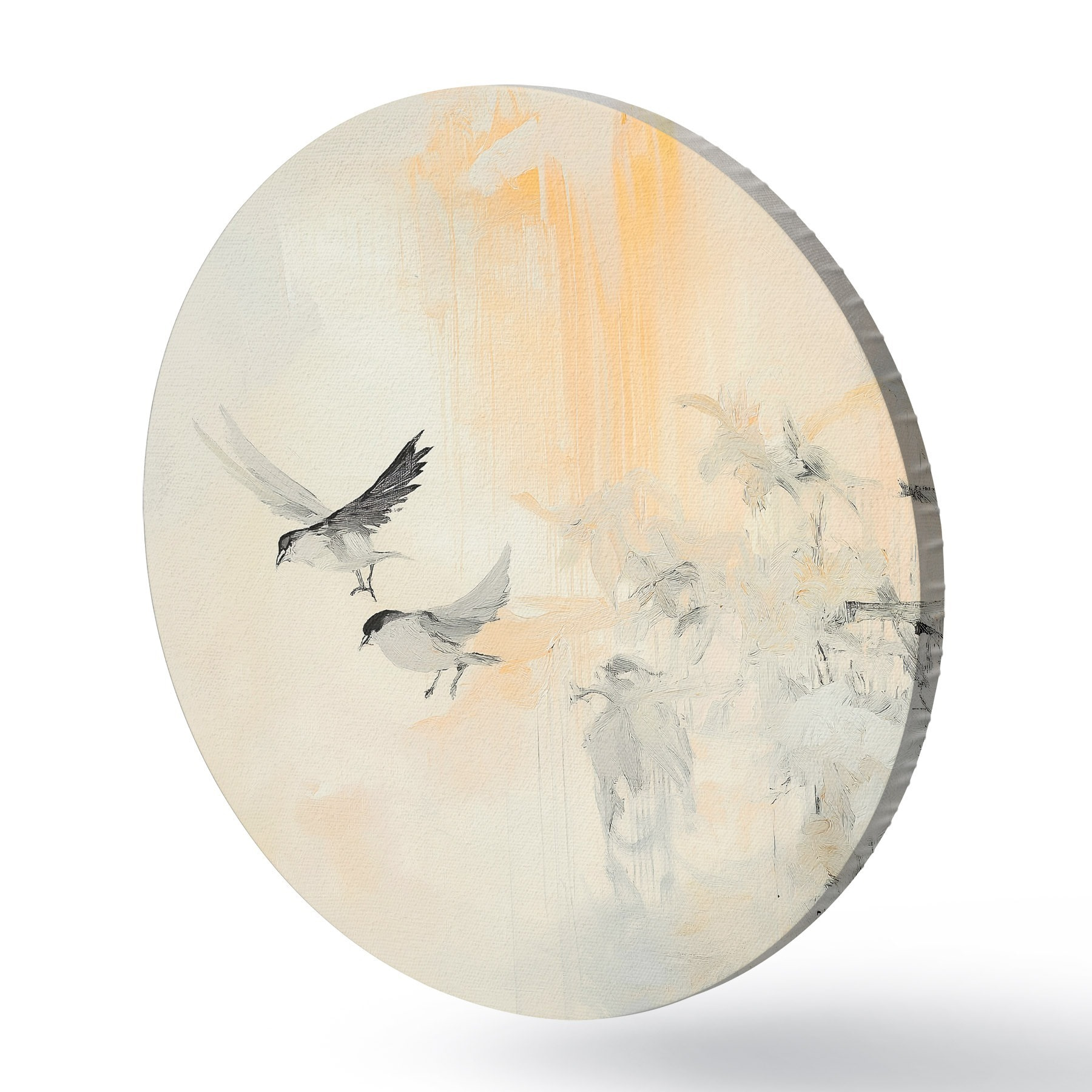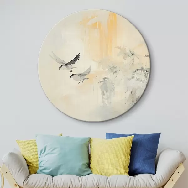 Cuadros redondos Abstracción con pájaros, estilo acrílico, colores gris y beige r42206