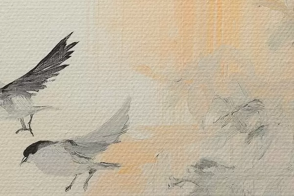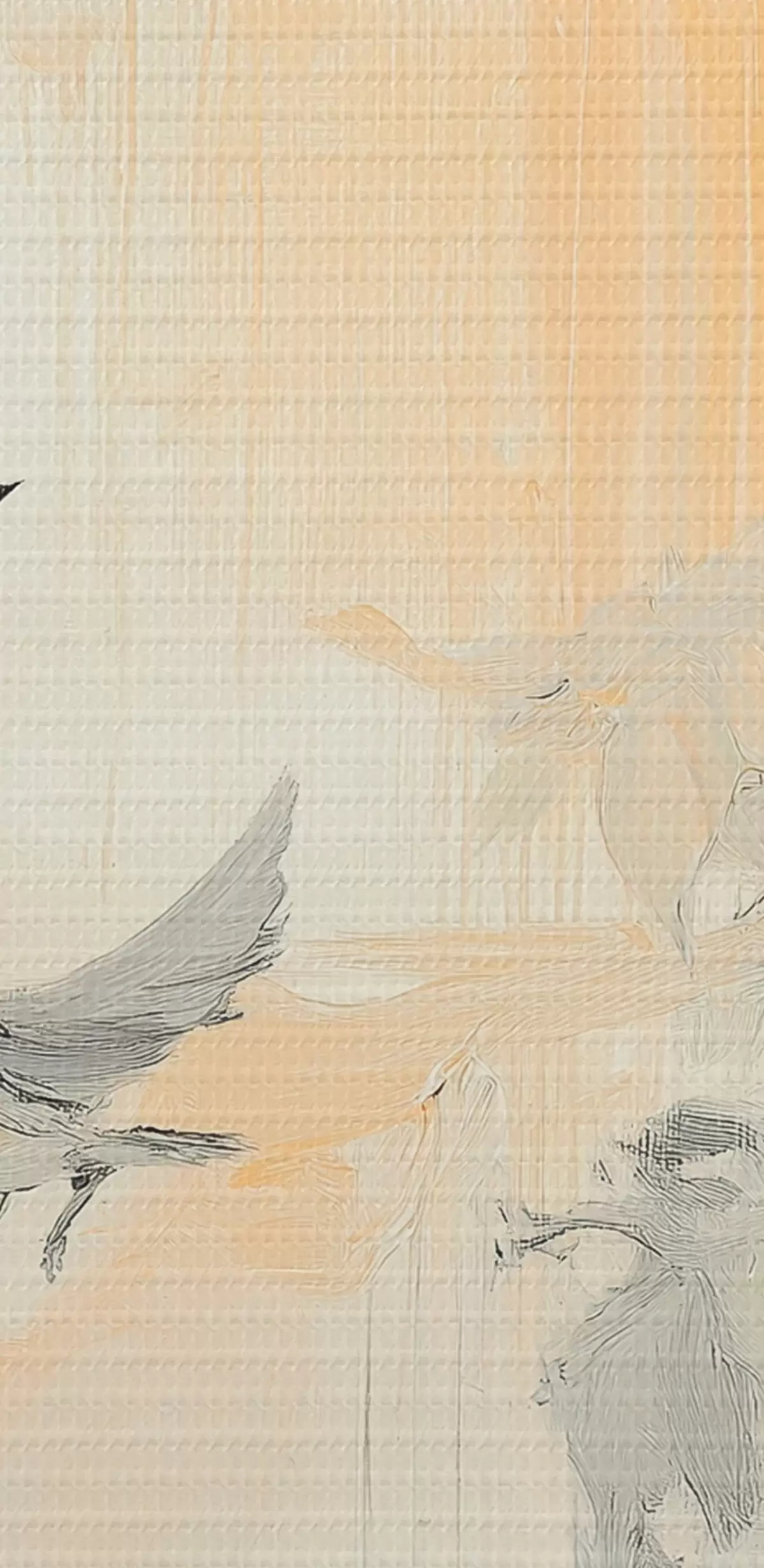 Foto Abstracción con pájaros, estilo acrílico, colores gris y beige Nr r42206