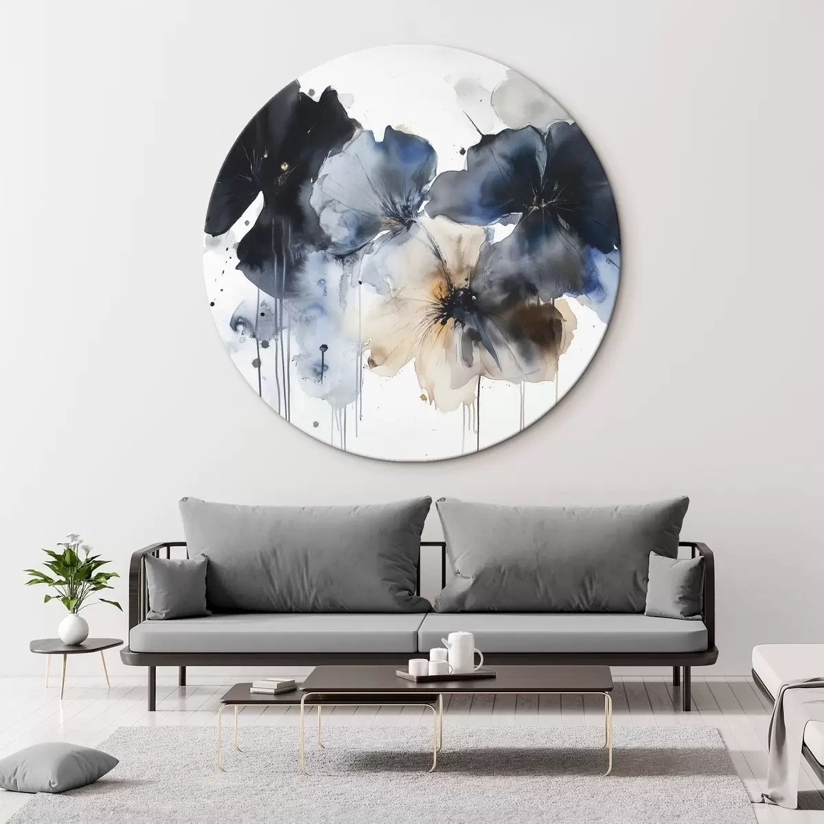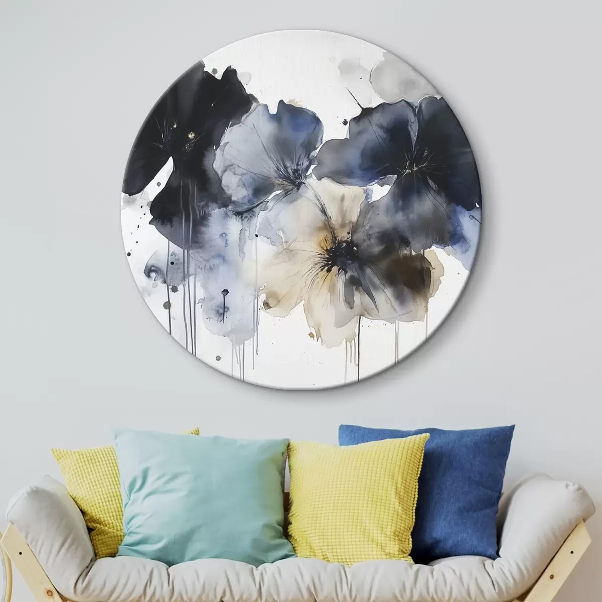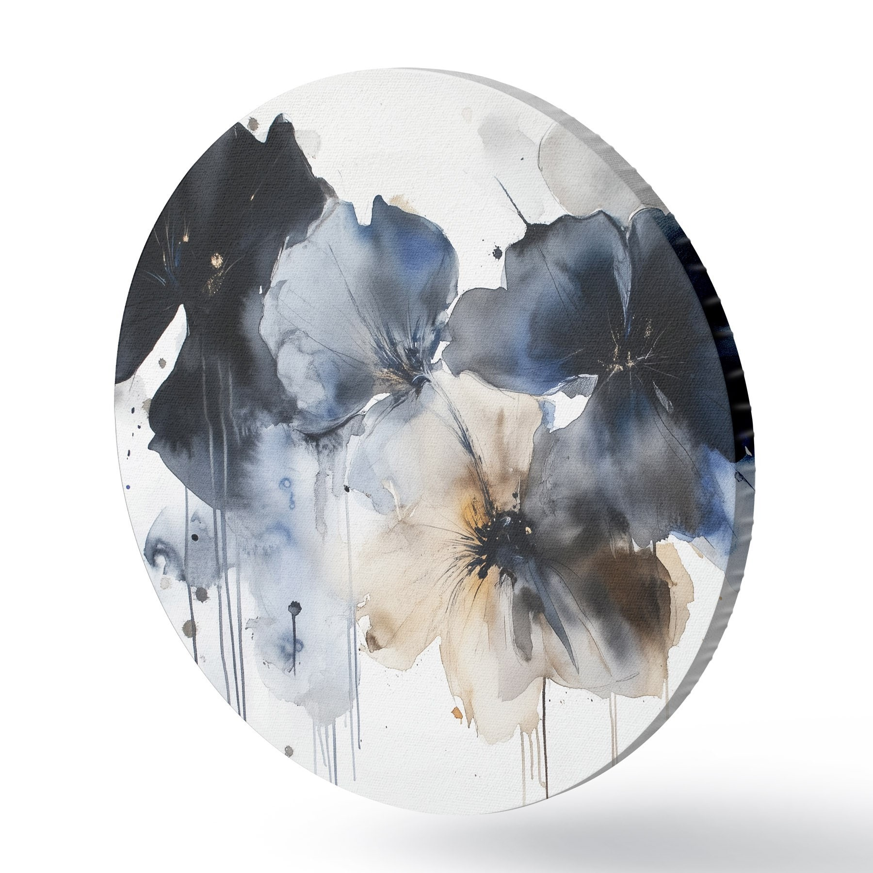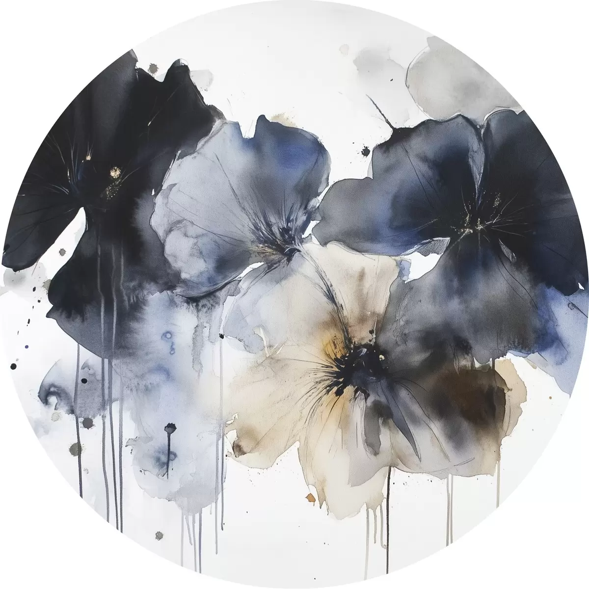 Cuadros redondos Flores de acuarela, estilo fluido, colores azules r42207