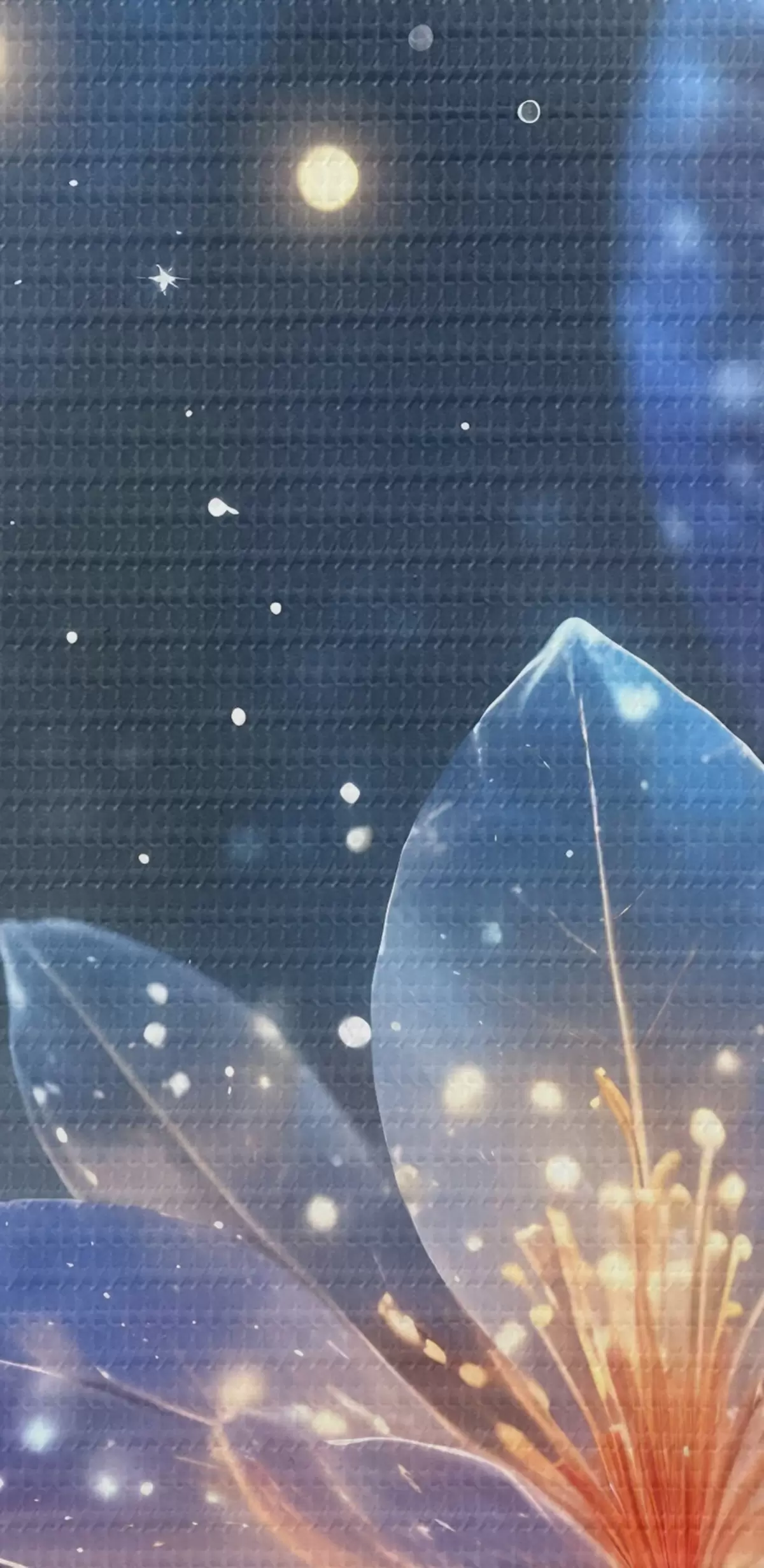 Foto Abstracto flores de fantasía en las ramas con pétalos de textura con las estrellas y una luna en un cielo nocturno de fondo Nr r42211