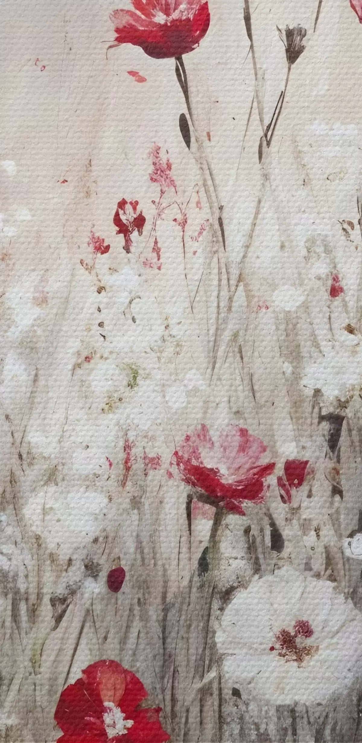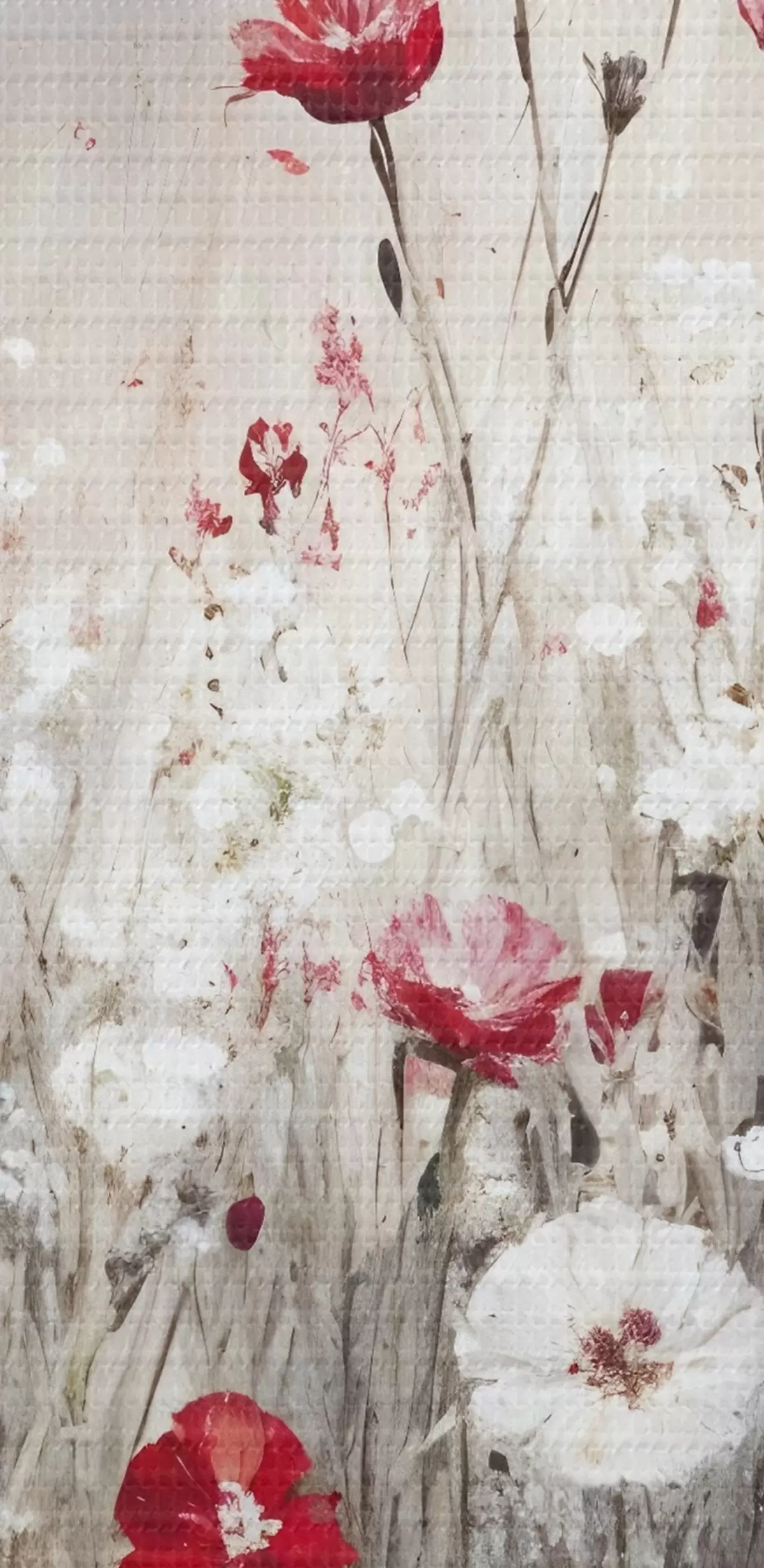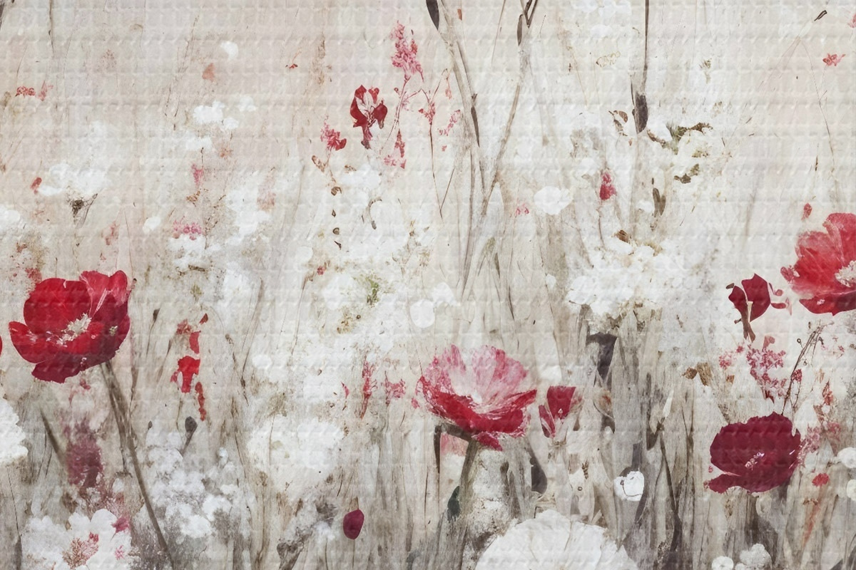 Foto Imitación abstracta al óleo de un campo de flores rojas y blancas de amapolas y margaritas sobre un fondo gris texturado Nr r42213