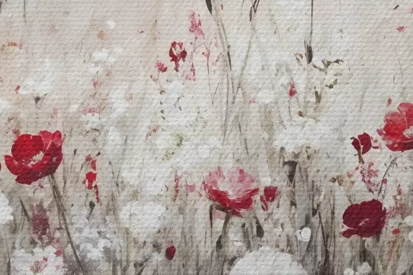 Foto Imitación abstracta al óleo de un campo de flores rojas y blancas de amapolas y margaritas sobre un fondo gris texturado Nr r42213