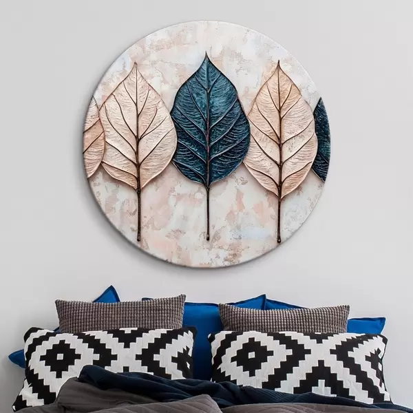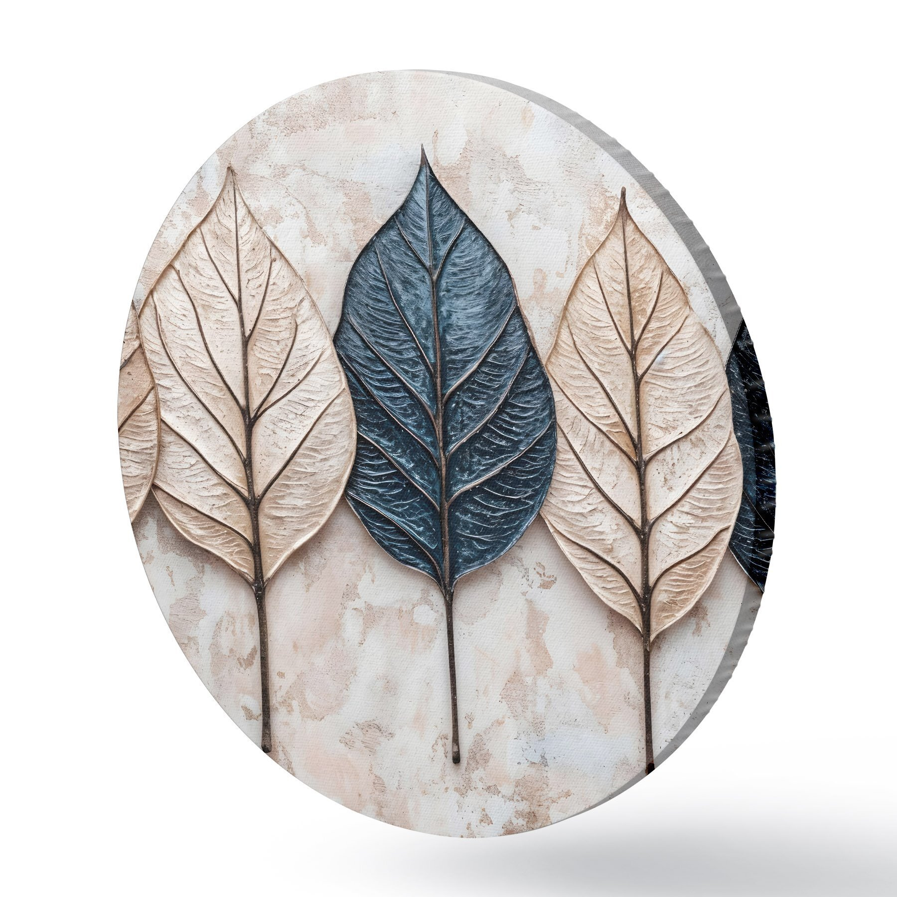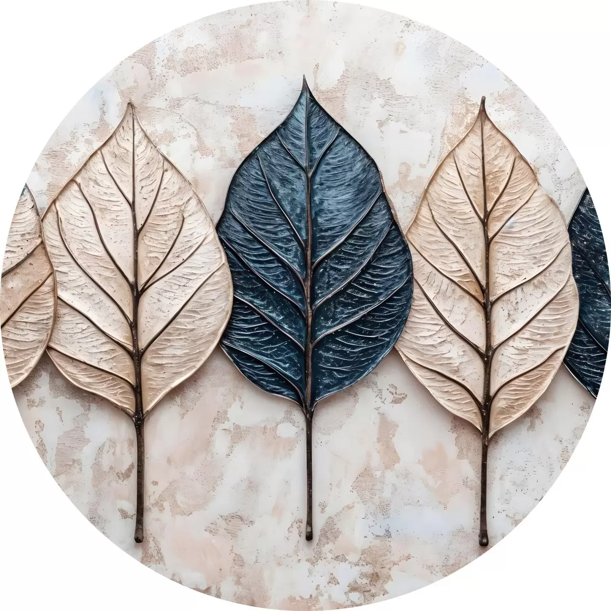 Cuadros redondos Surtido de hojas abstractas otoñales en varios tonos de marrón, beige y azul dispuestas en fila sobre un fondo claro r42217