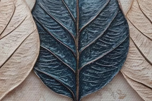 Foto Surtido de hojas abstractas otoñales en varios tonos de marrón, beige y azul dispuestas en fila sobre un fondo claro Nr r42217