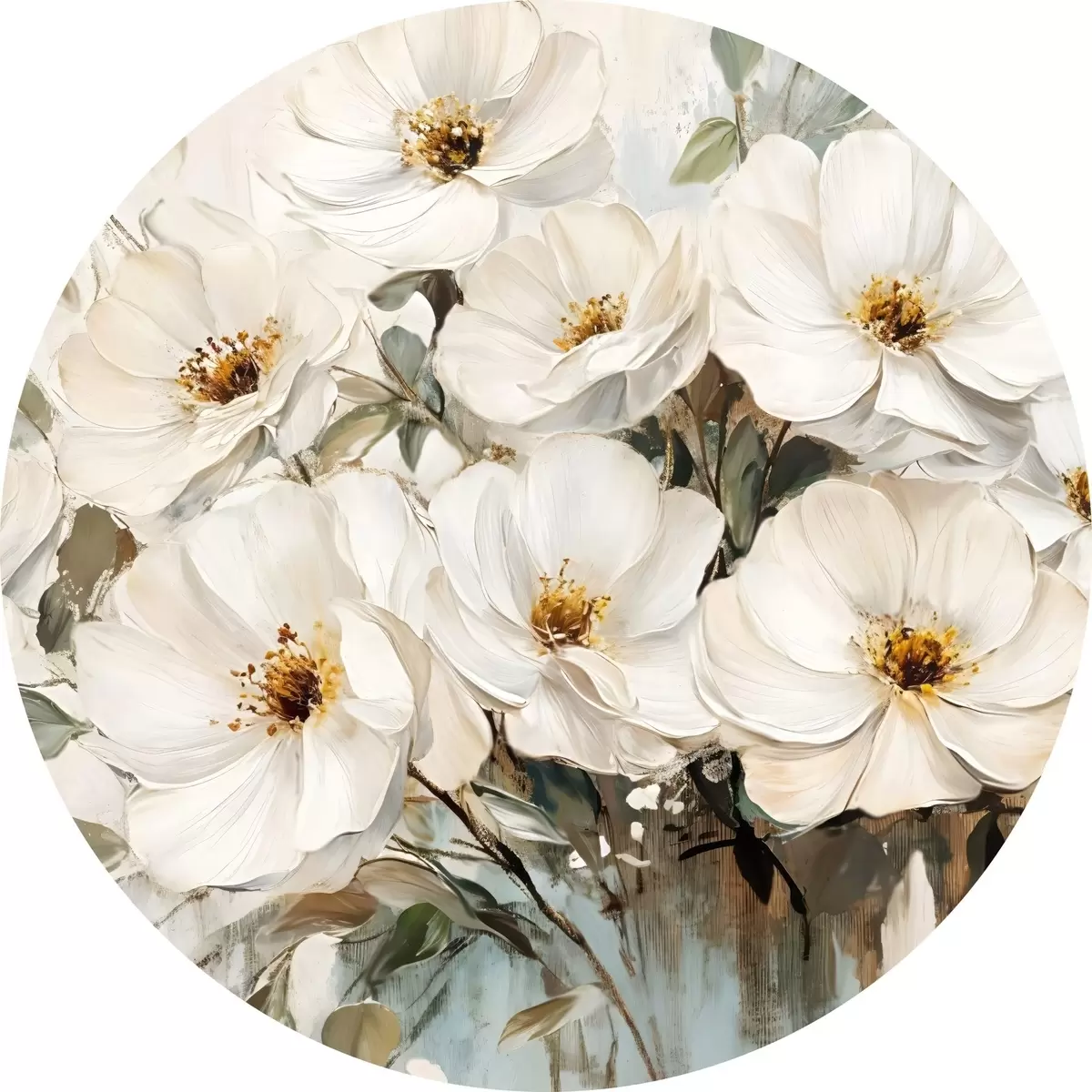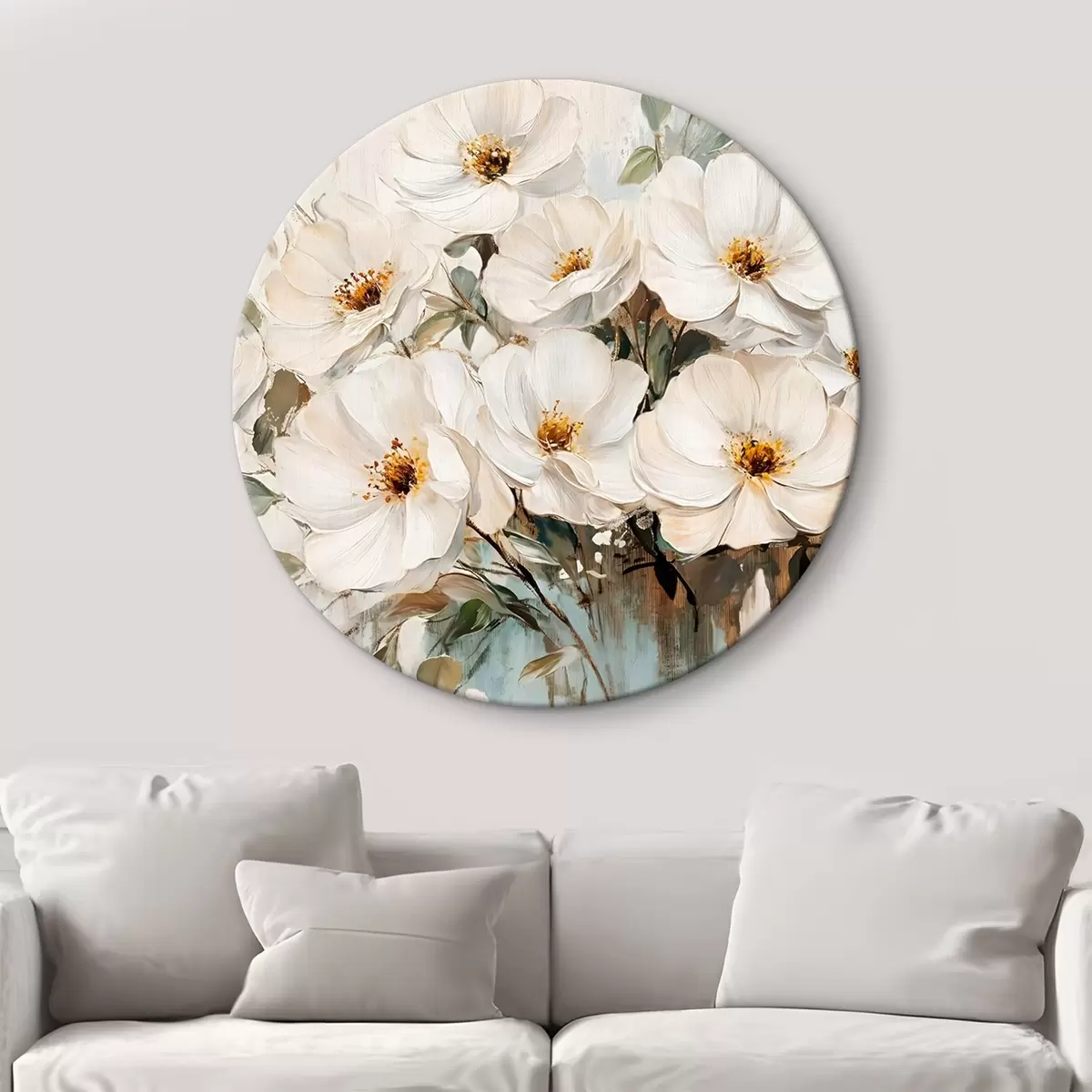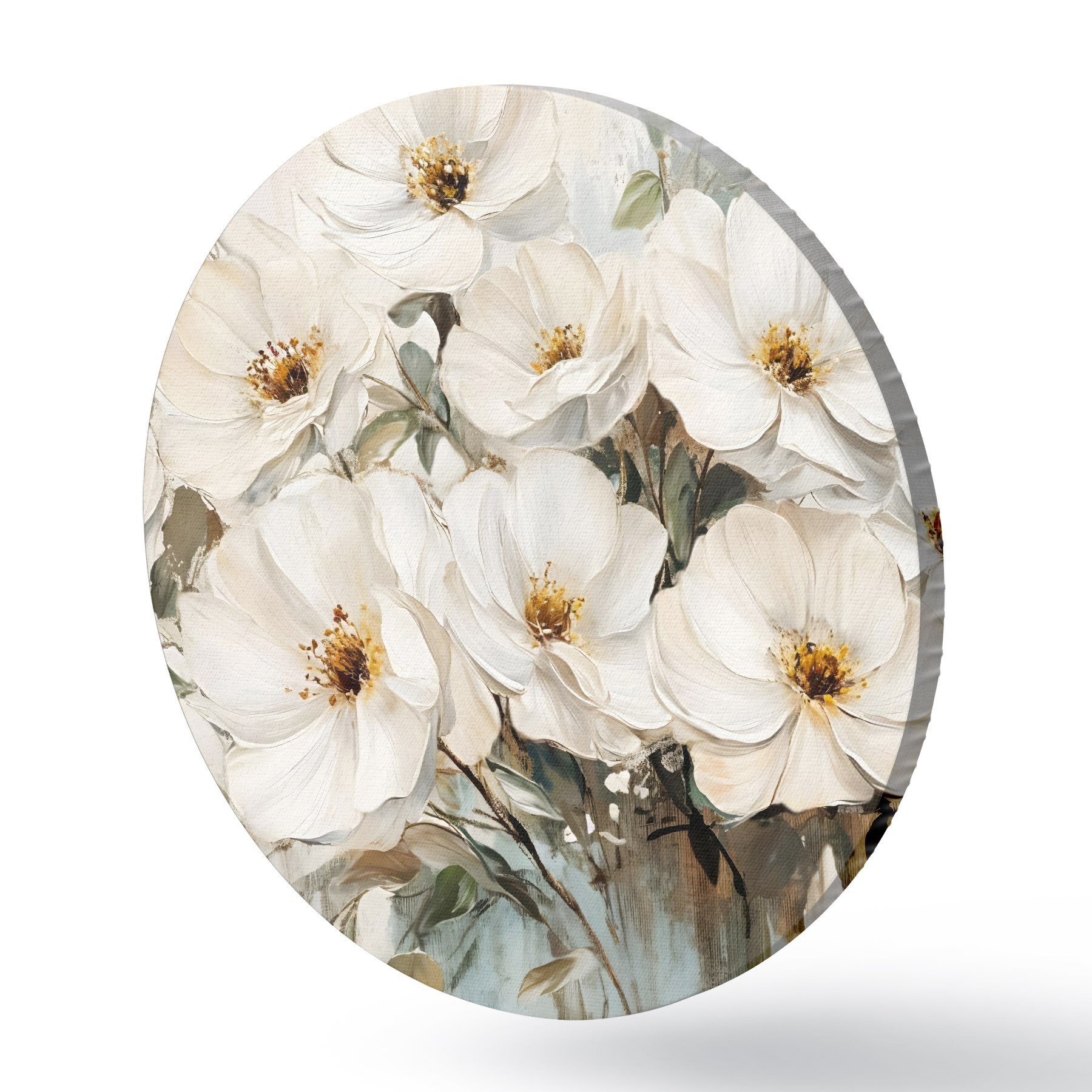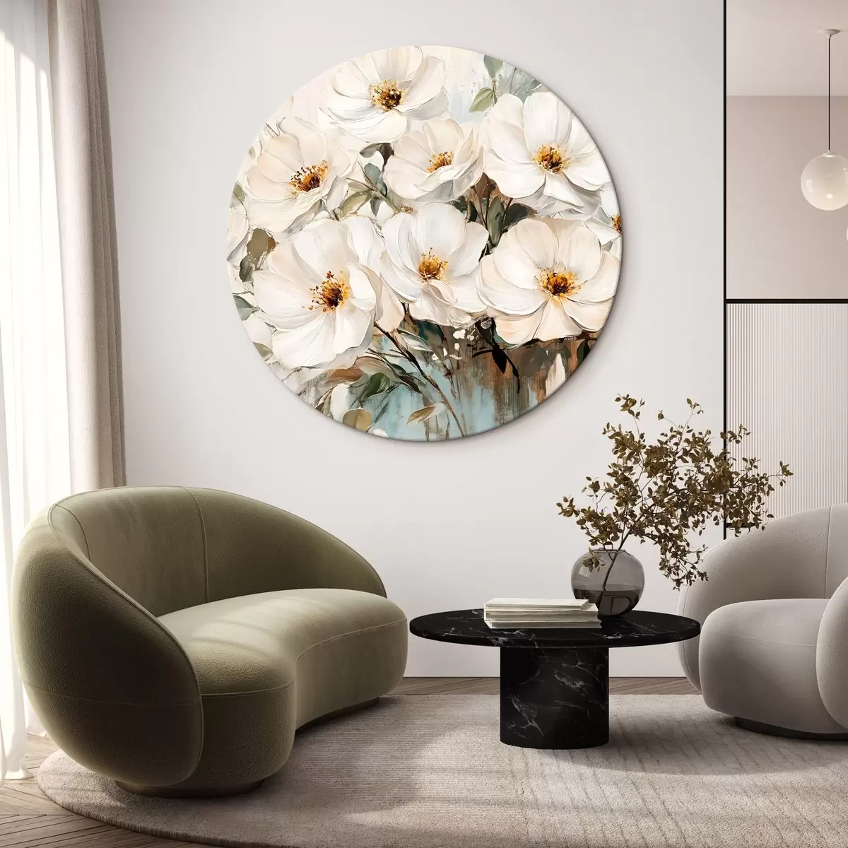 Cuadros redondos Ramo de grandes flores blancas al óleo con centros amarillos sobre fondo claro r42222