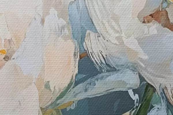 Foto Blanco minimalista abstracto peonías pintura al óleo de imitación sobre un fondo azul suave Nr r42226