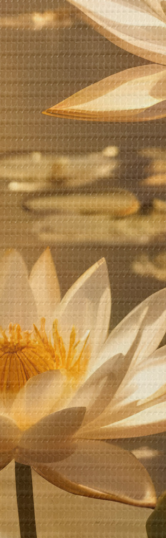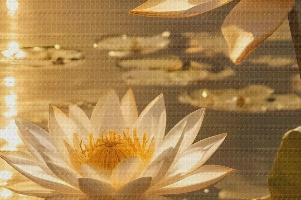 Foto Flores de loto blancas flotando en un estanque en calma con el sol, creando un ambiente sereno y tranquilo Nr r42239