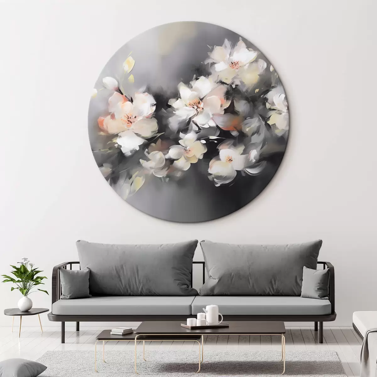Cuadros redondos Rama con flores abstractas r42242
