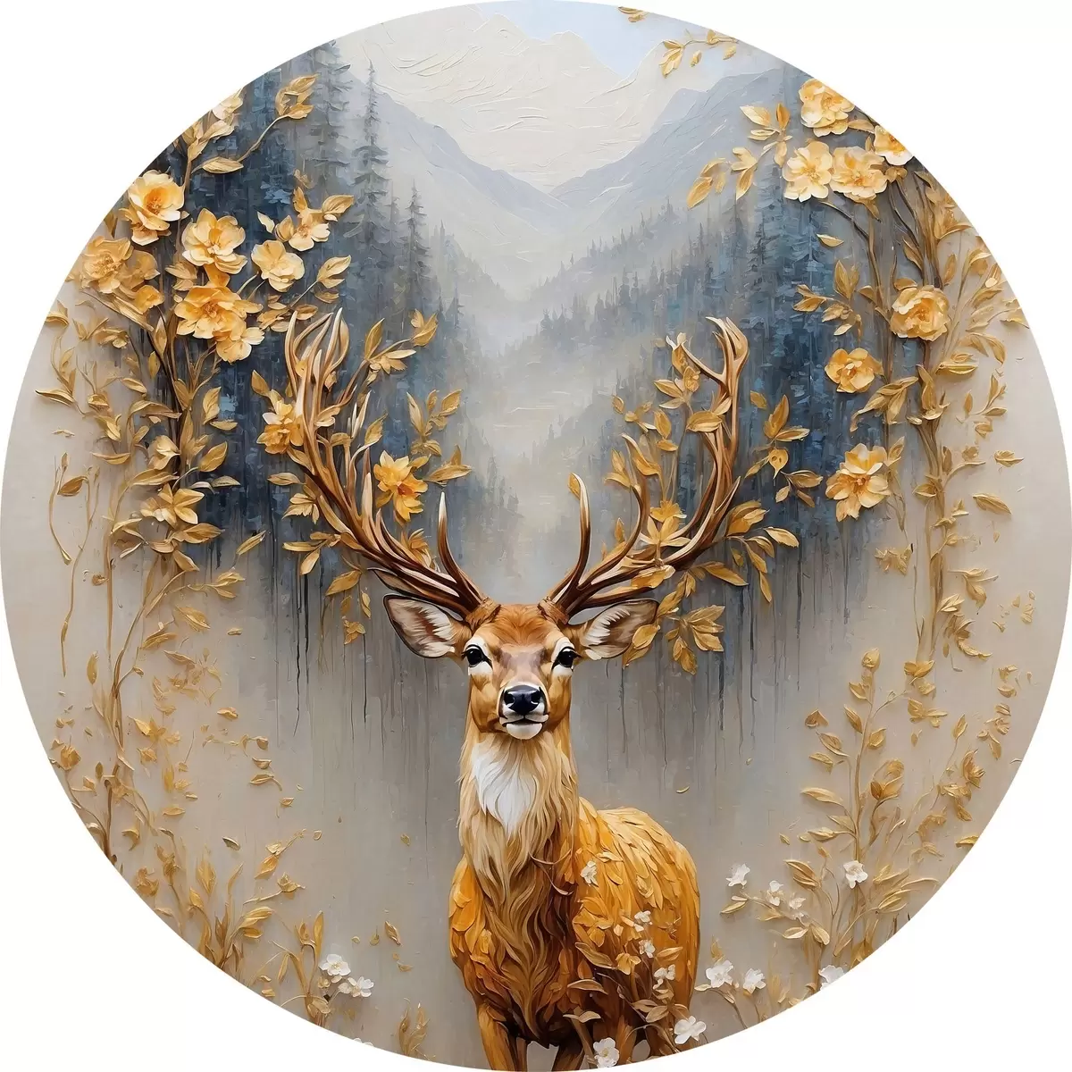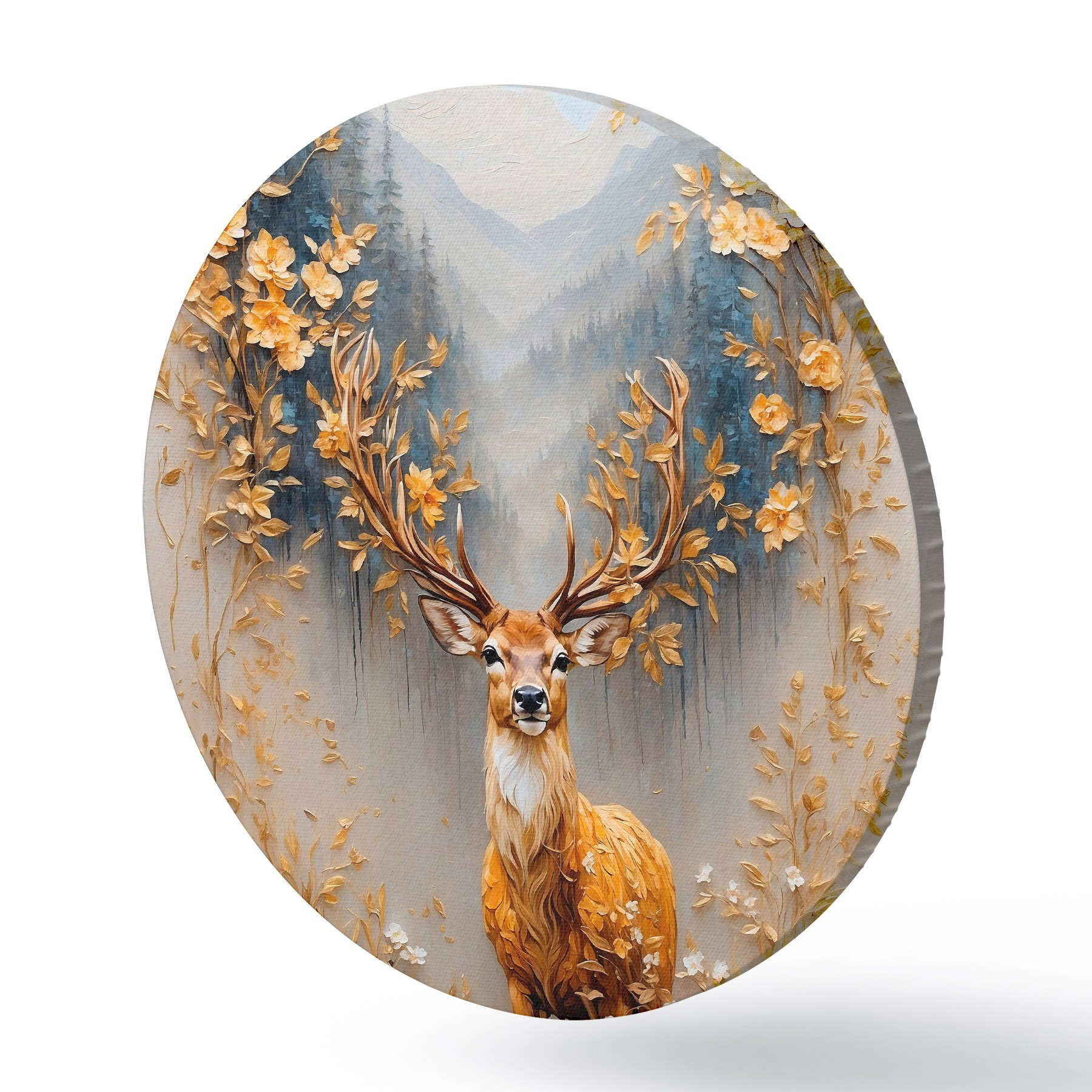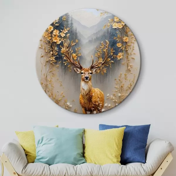 Cuadros redondos Ciervo con gran cornamenta sobre fondo de bosque r42252