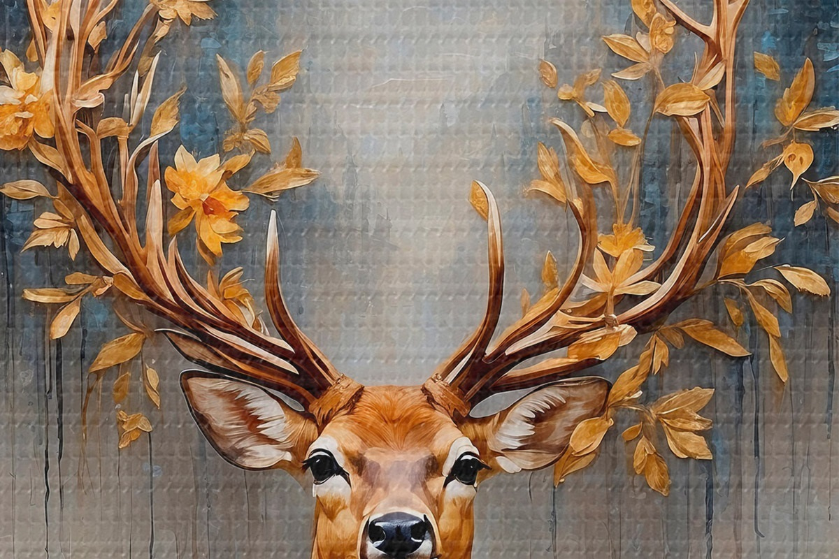 Foto Ciervo con gran cornamenta sobre fondo de bosque Nr r42252
