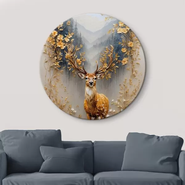 Cuadros redondos Ciervo con gran cornamenta sobre fondo de bosque r42252