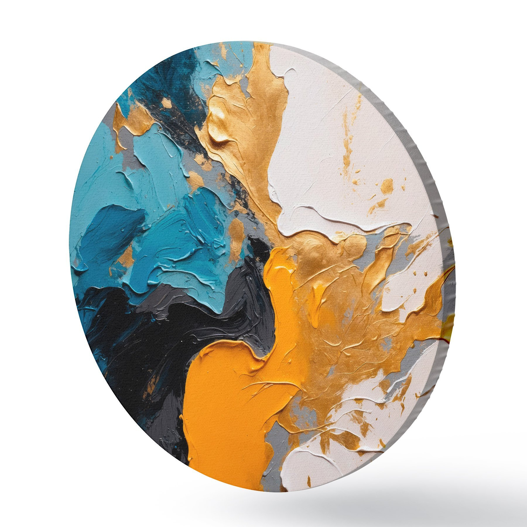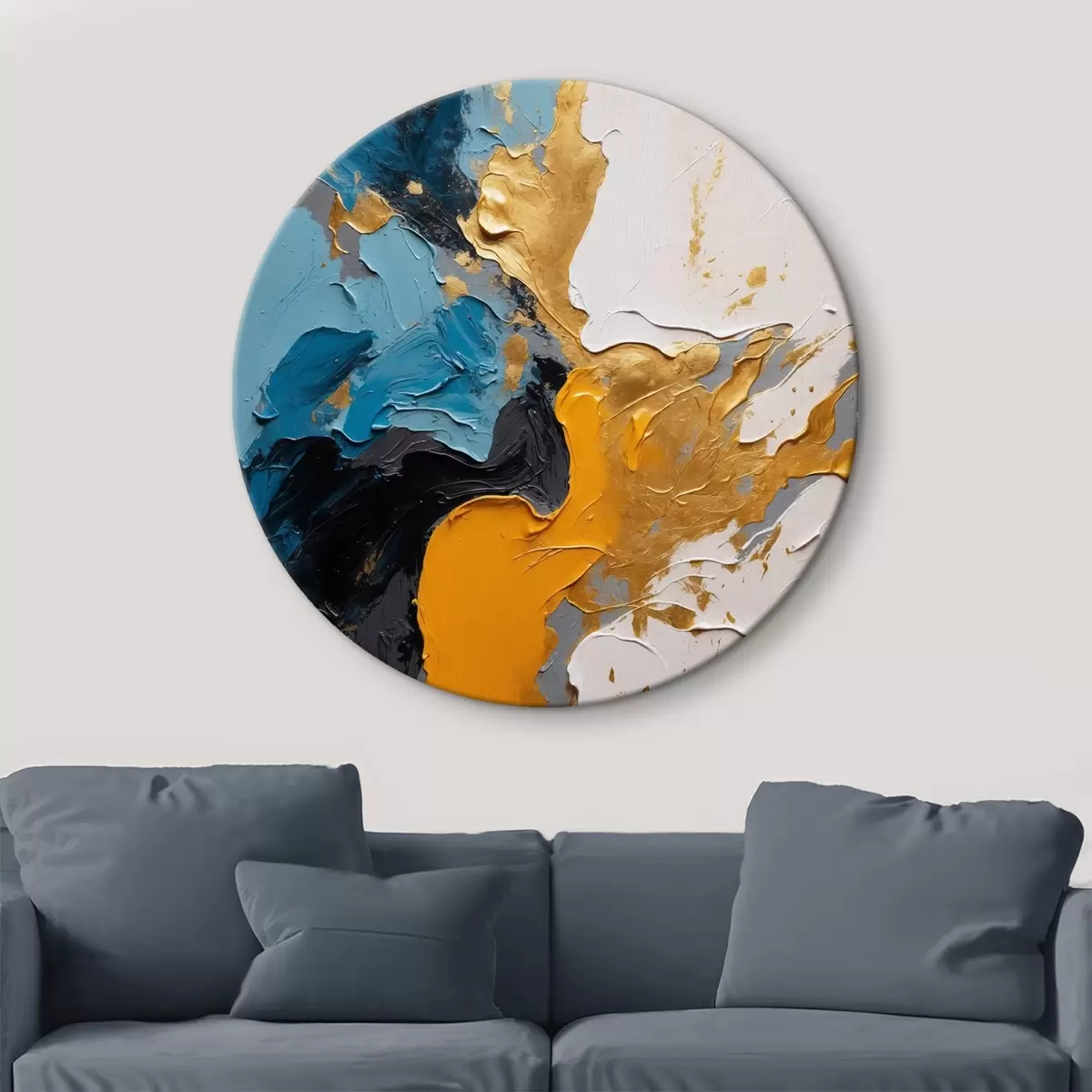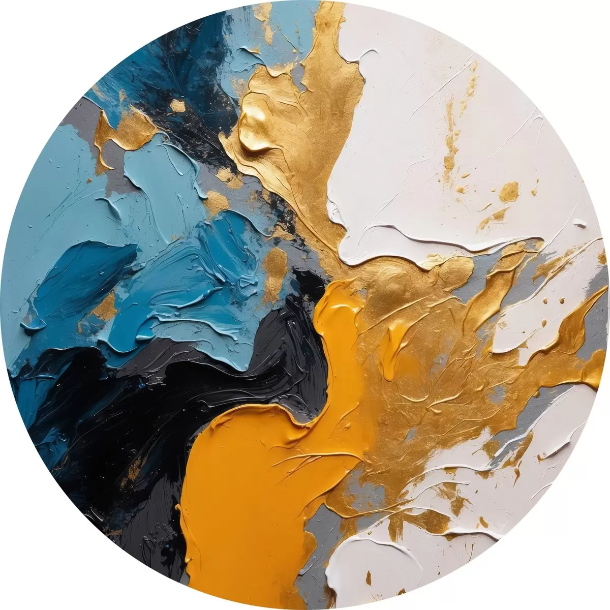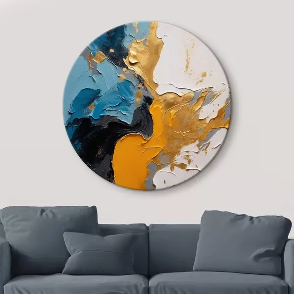 Cuadros redondos Pintura abstracta con colores azul, blanco y amarillo r42254