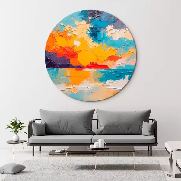 Cuadros redondos Vista del mar y el sol al óleo r42258