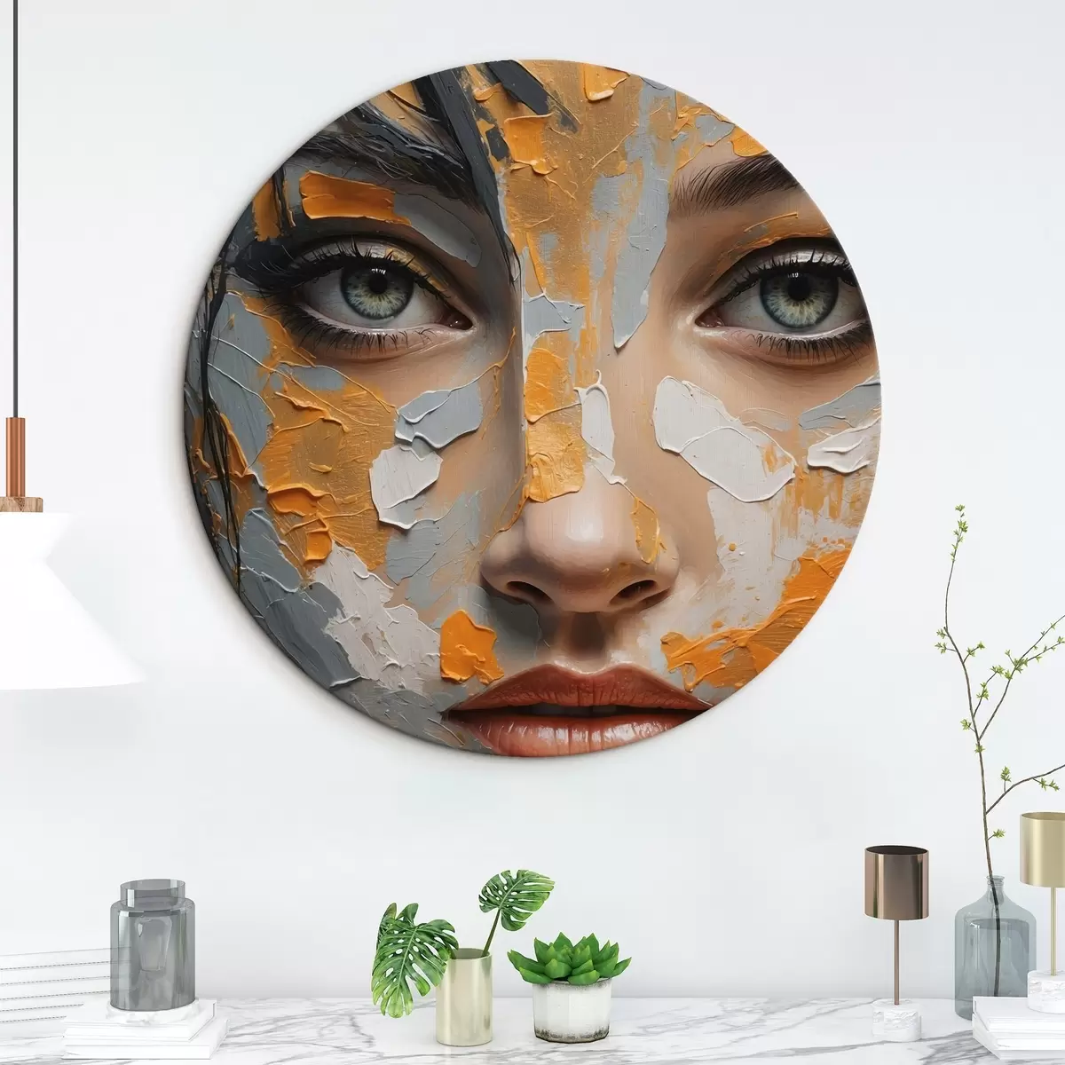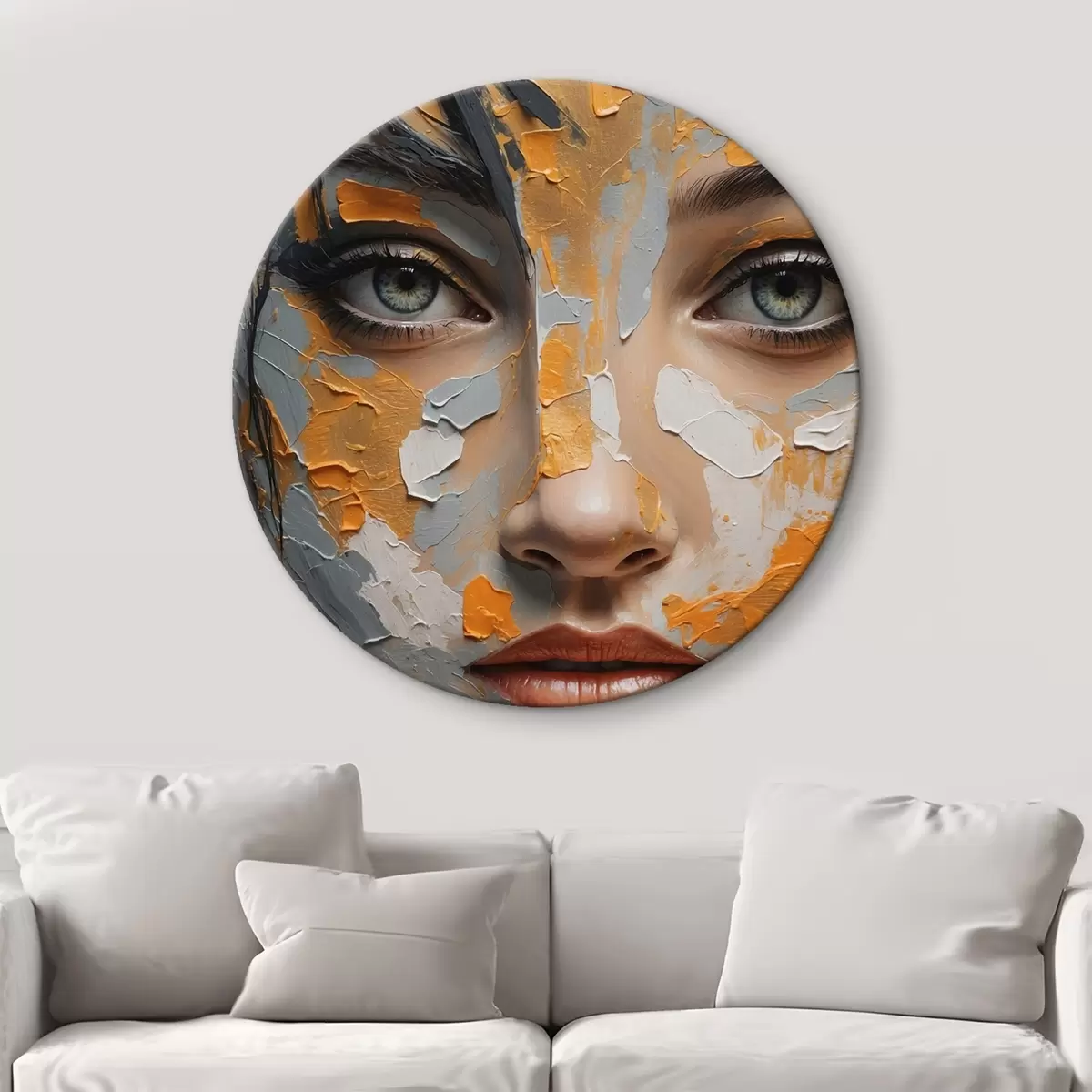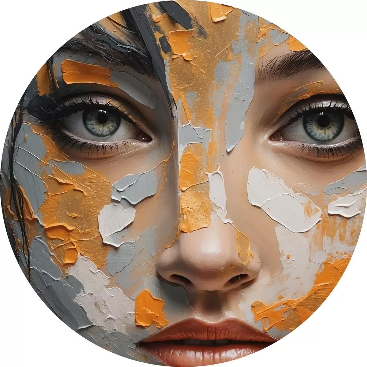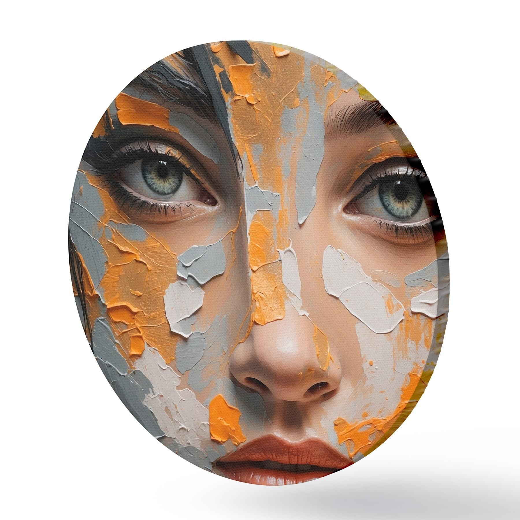 Cuadros redondos Cara de niña con pintura blanca y amarilla r42259
