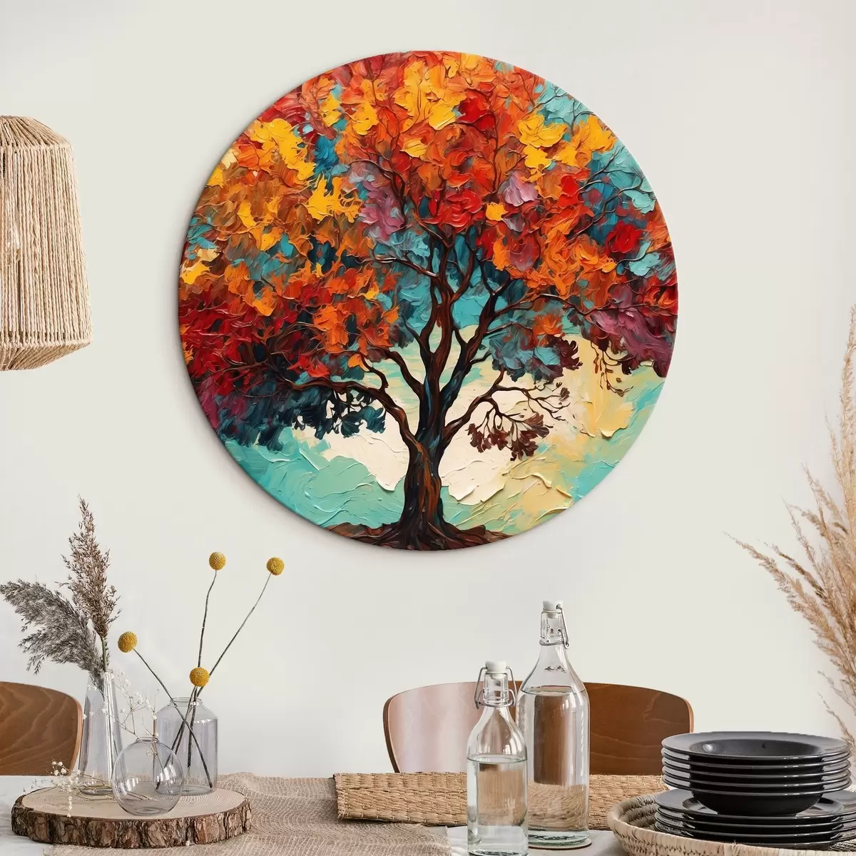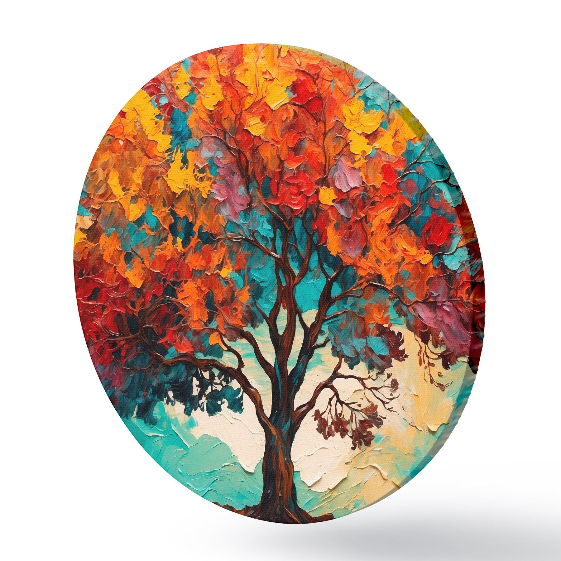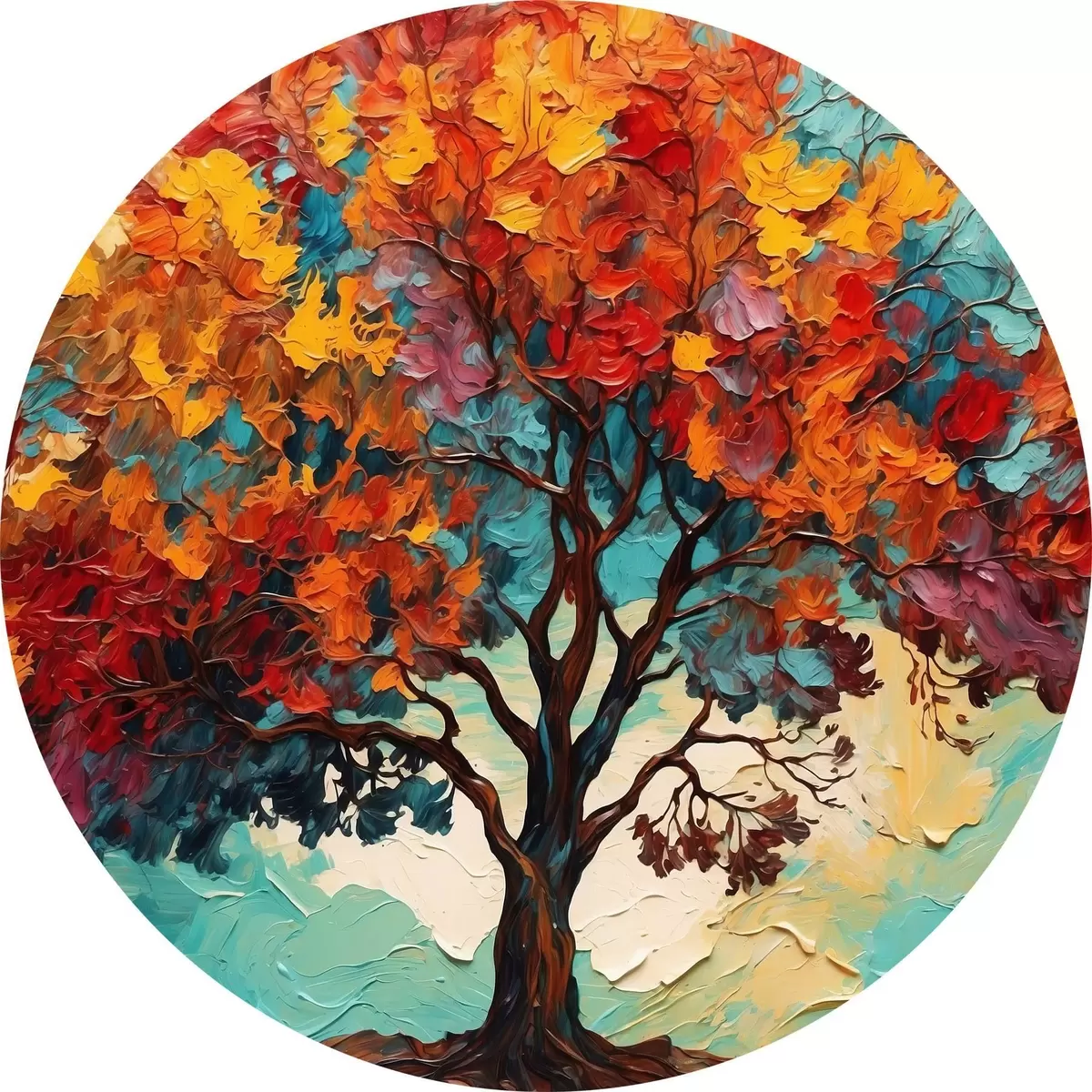 Cuadros redondos Árbol sobre fondo azul anaranjado al óleo r42267