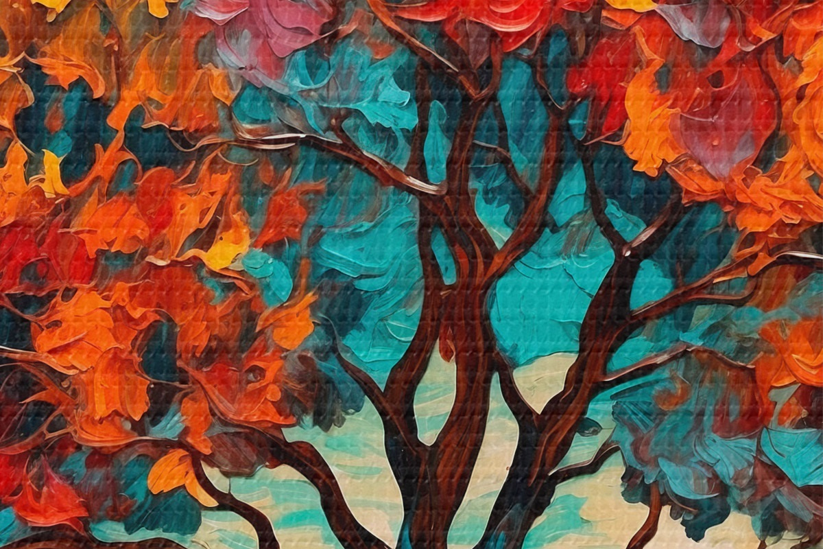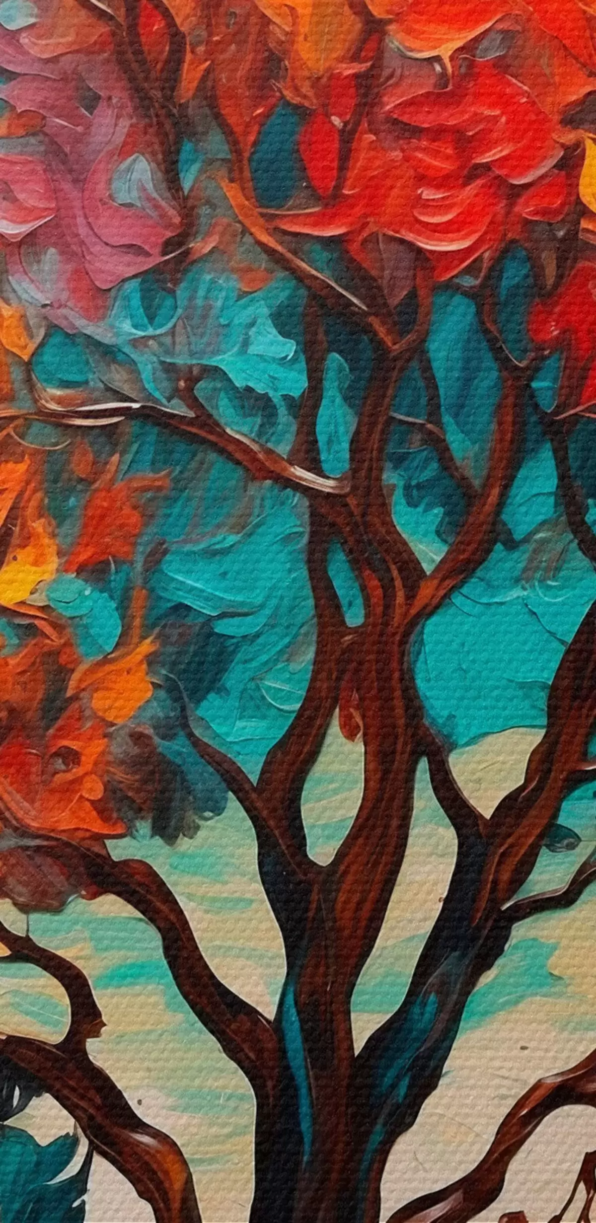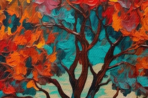 Foto Árbol sobre fondo azul anaranjado al óleo Nr r42267