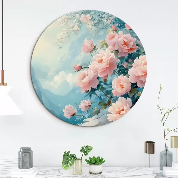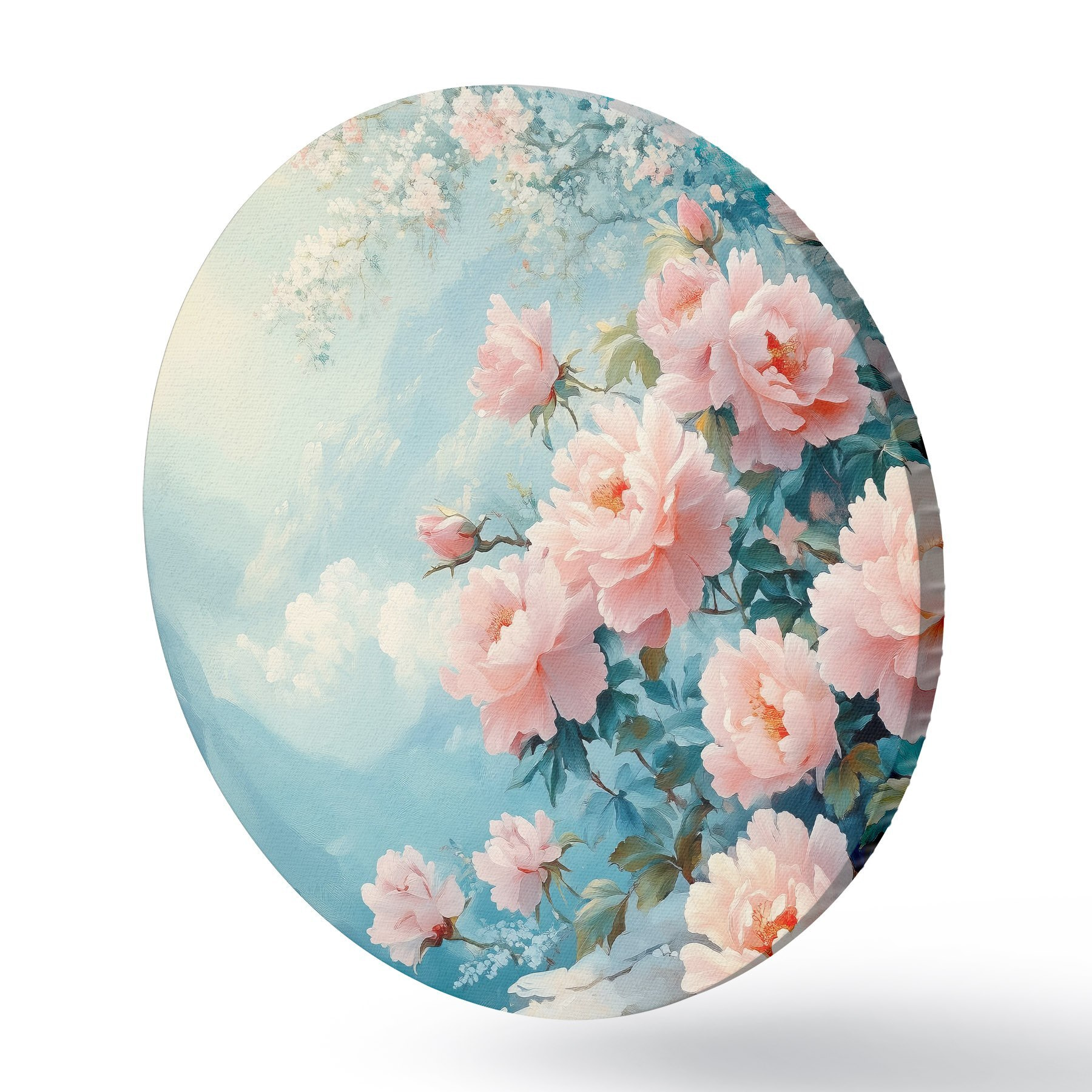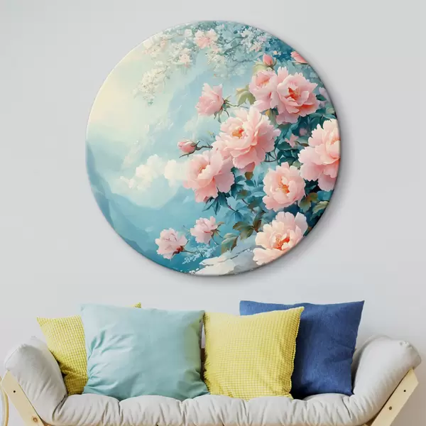 Cuadros redondos Montañas azules y flores en primer plano r42324