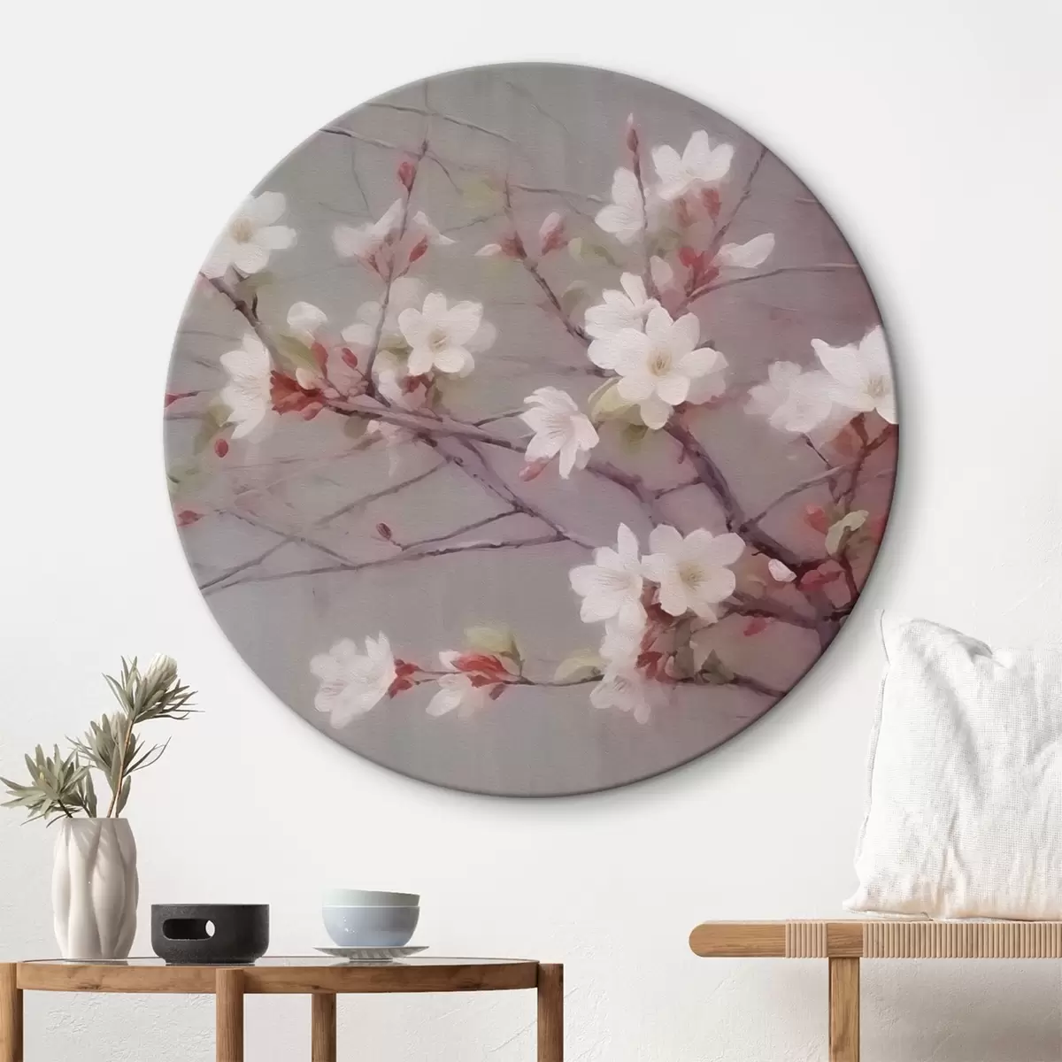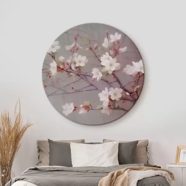 Cuadros redondos Una rama con flores blancas r42339