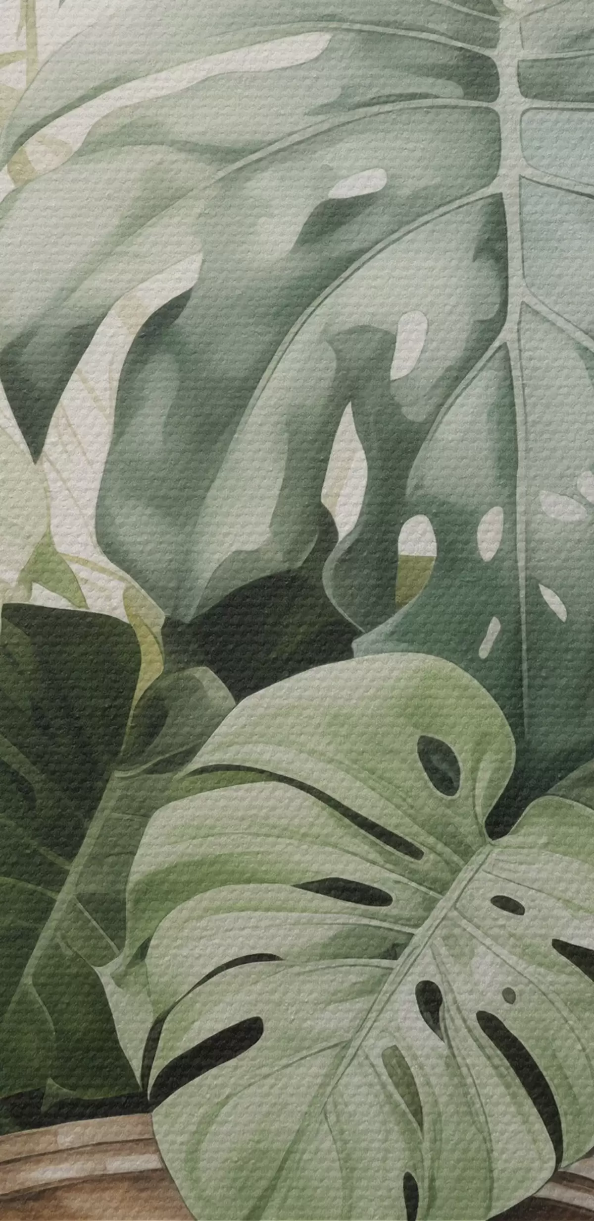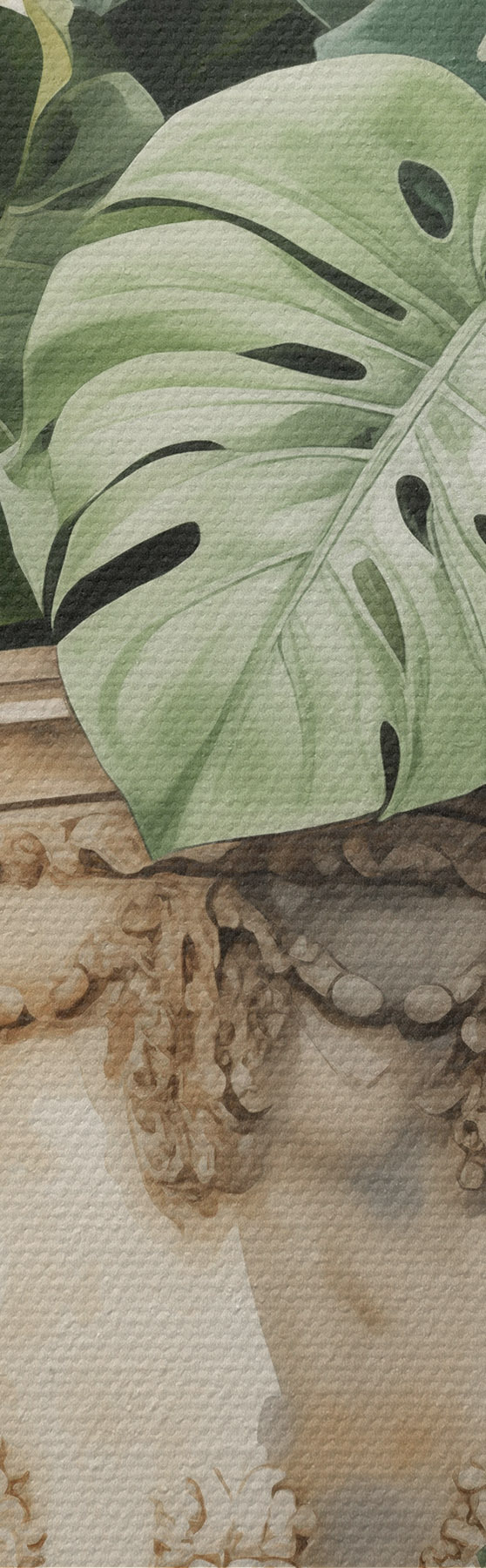 Foto Hojas de monstera tropical sobre una columna imitación acuarela Nr r42351