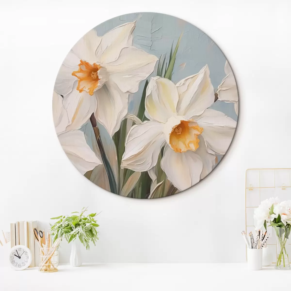 Cuadros redondos Narcisos blancos gran imitación de pintura r42355