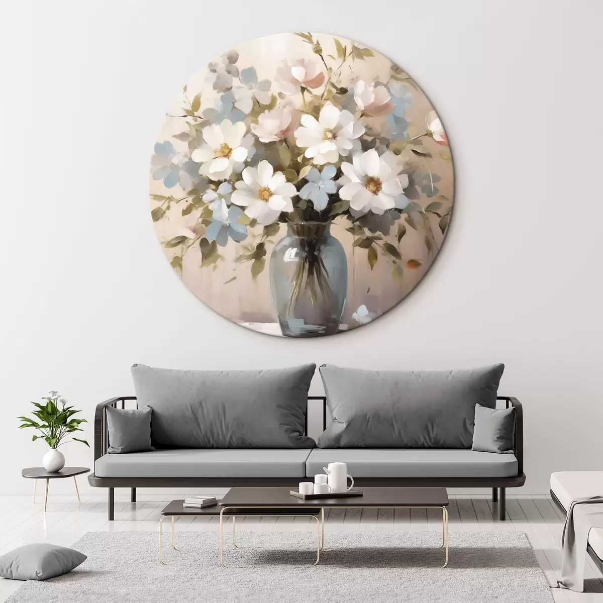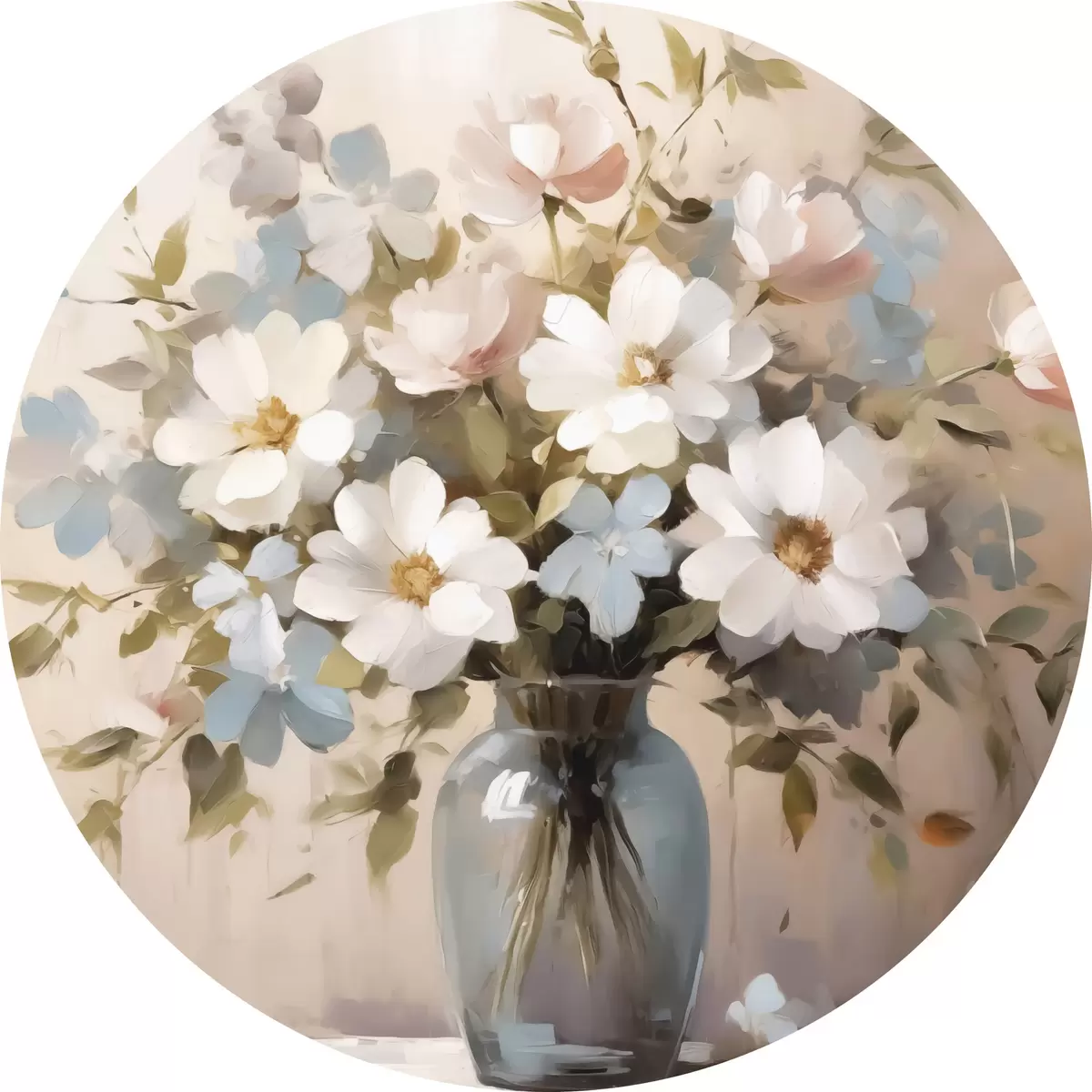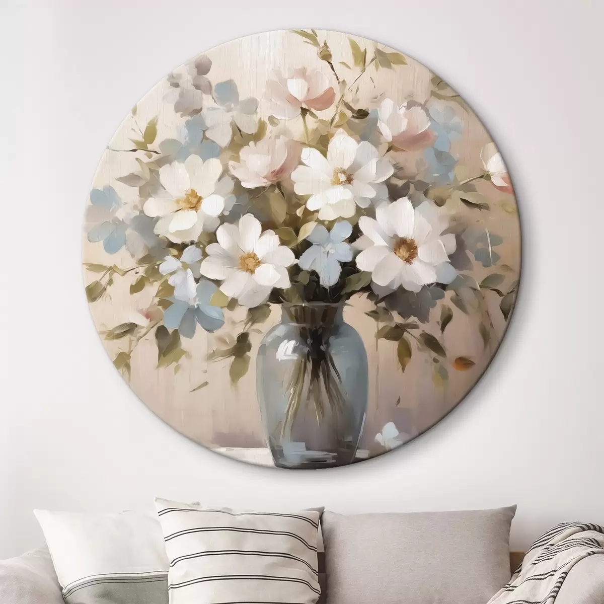 Cuadros redondos Ramo de flores y ramitas en un jarrón imitación de pintura r42356