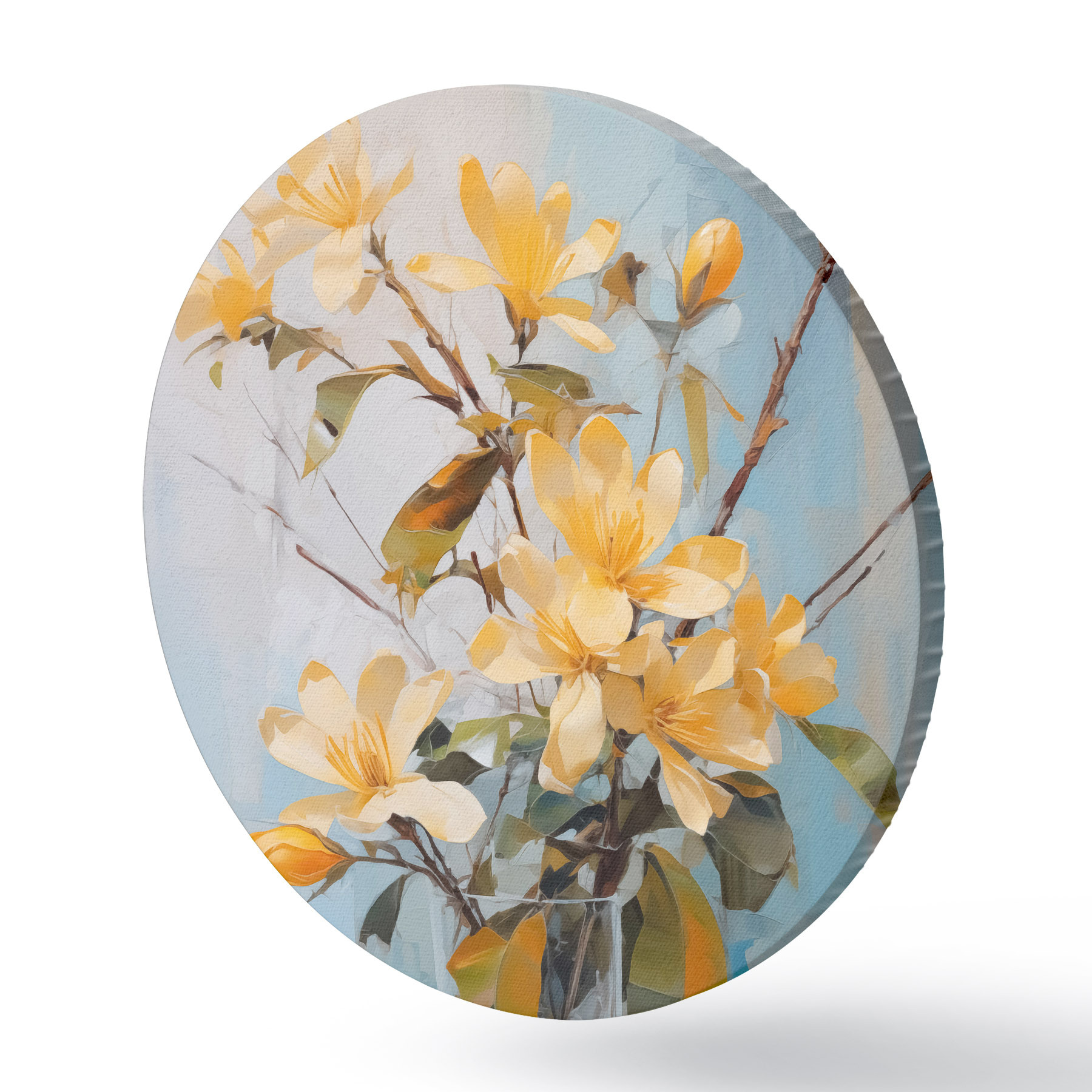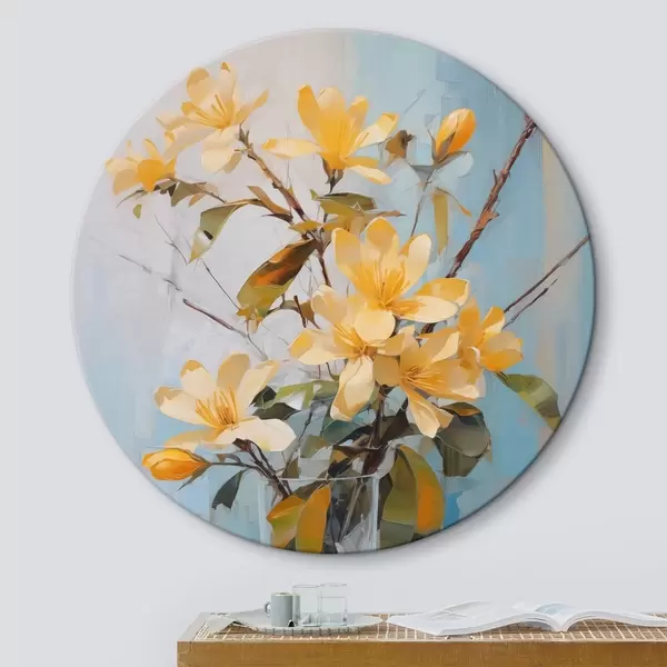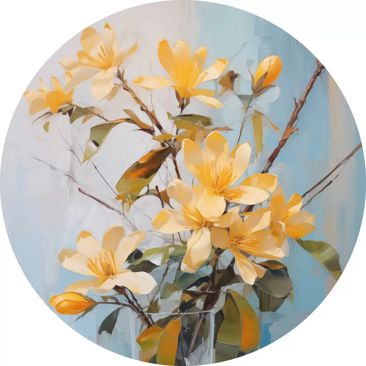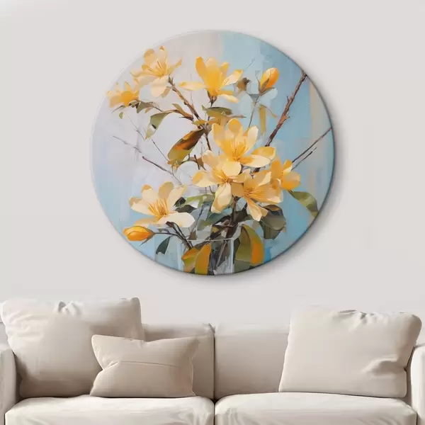 Cuadros redondos Ramas con flores amarillas en un jarrón imitación pintura r42358