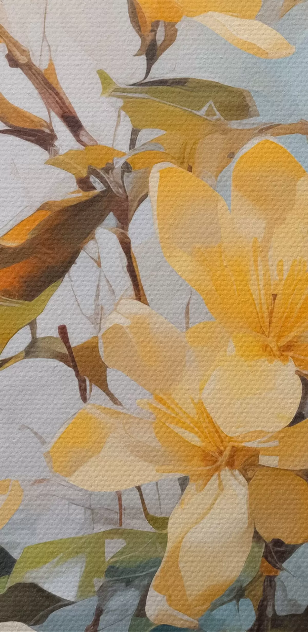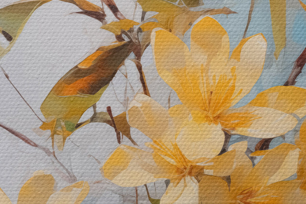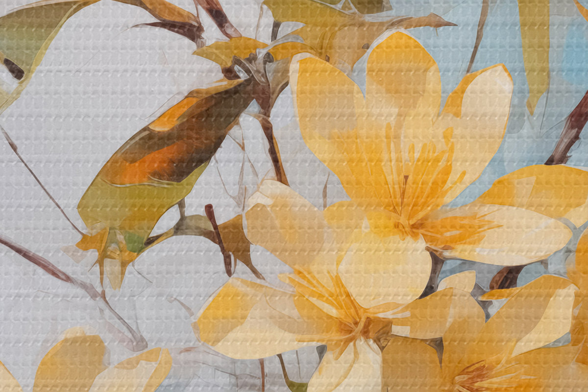Foto Ramas con flores amarillas en un jarrón imitación pintura Nr r42358