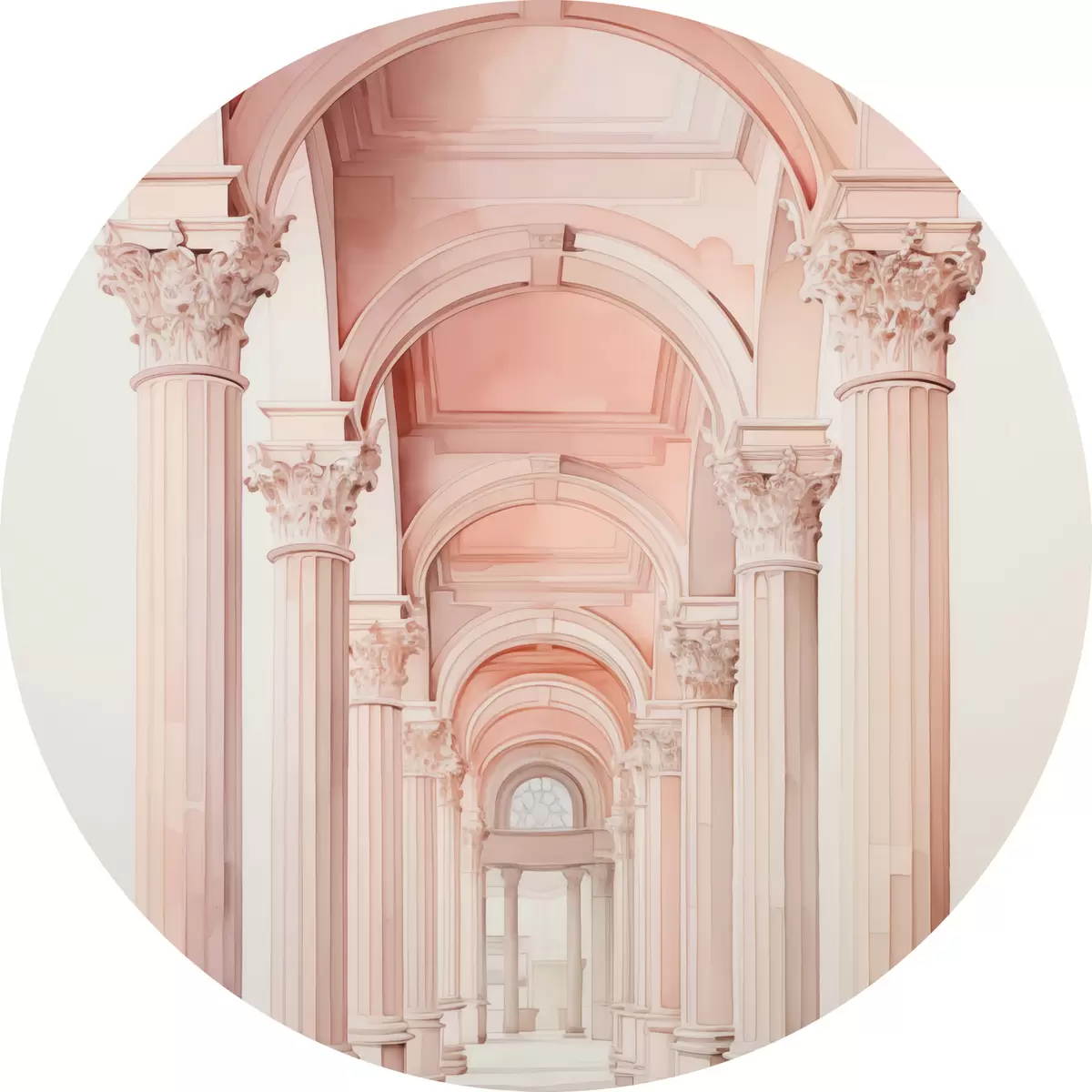 Cuadros redondos Estructura arquitectónica con columnas imitación acuarela r42361