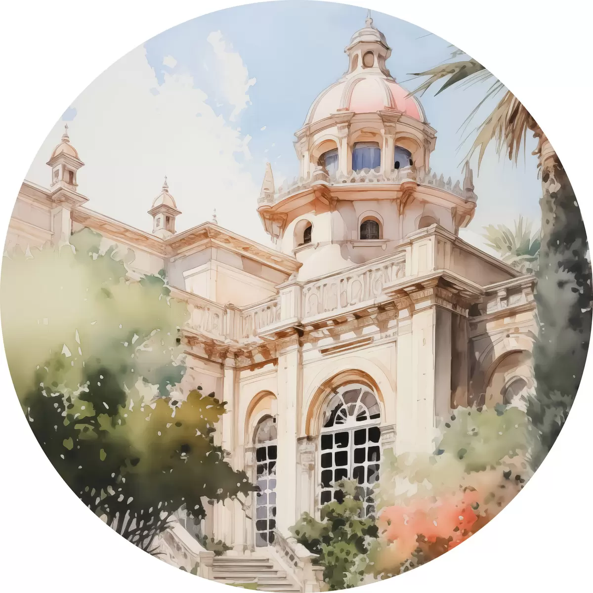 Cuadros redondos Jardín cerca de la casa imitación acuarela r42362
