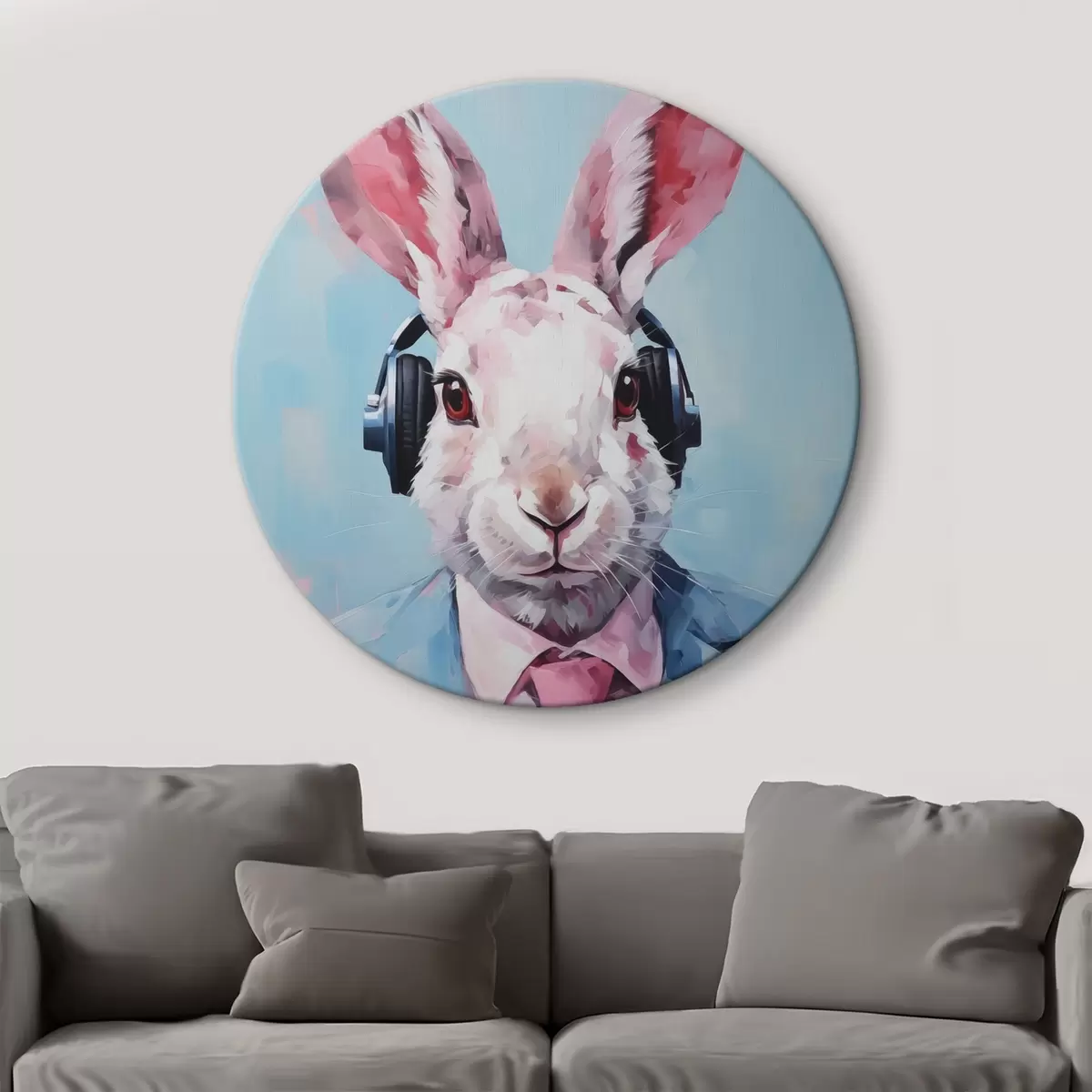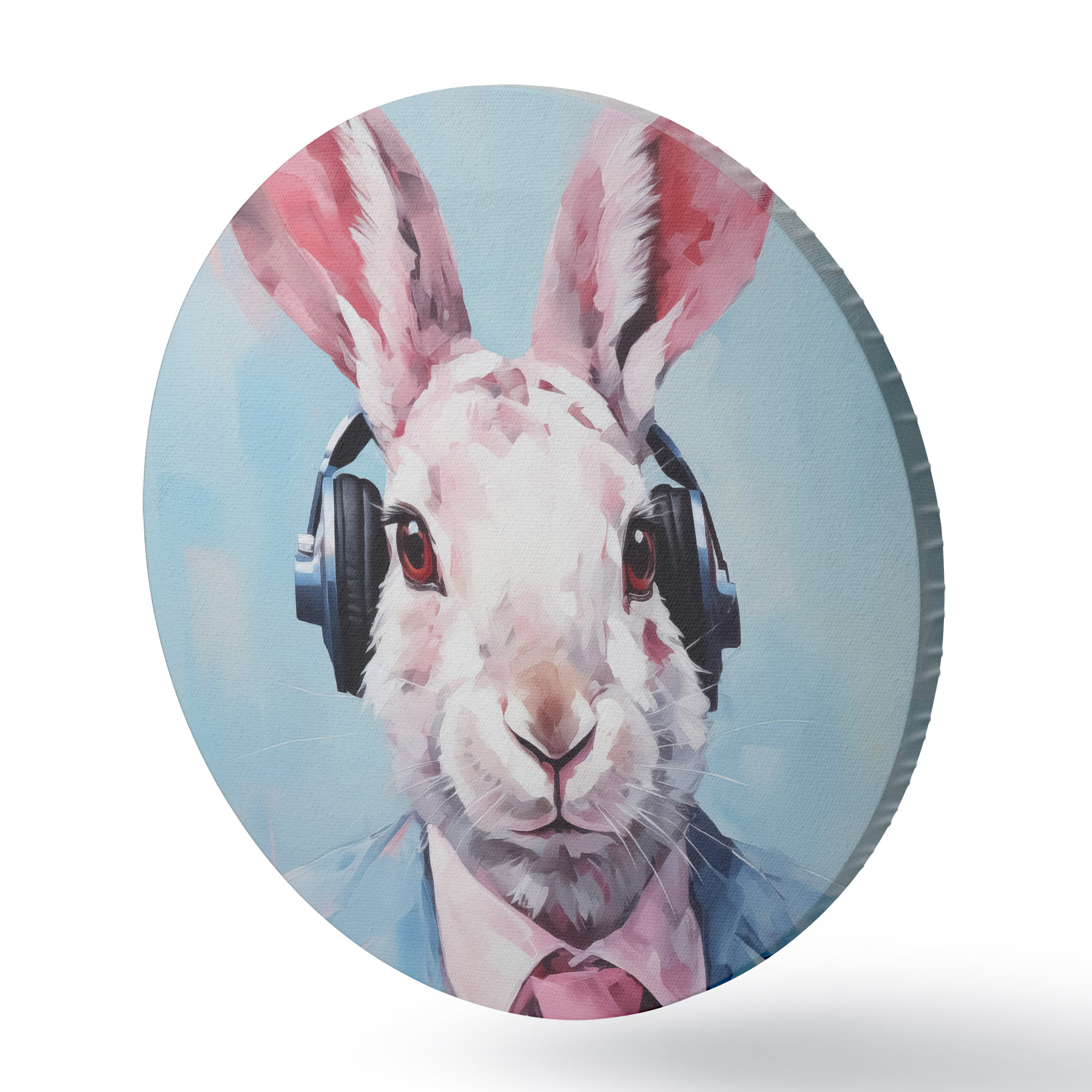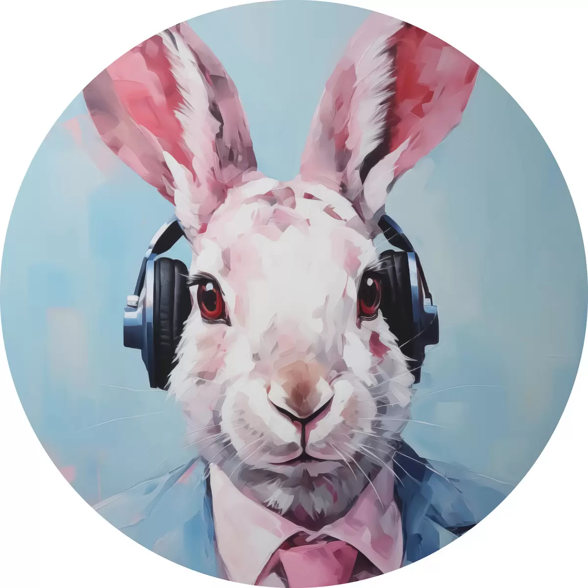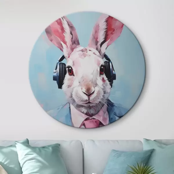 Cuadros redondos Conejo con auriculares en una chaqueta azul imitación de pintura r42365