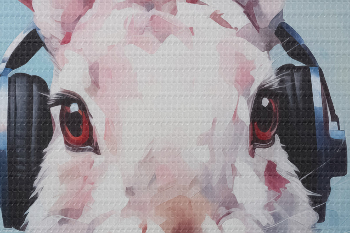 Foto Conejo con auriculares en una chaqueta azul imitación de pintura Nr r42365
