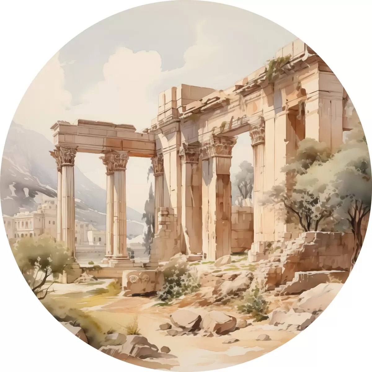 Cuadros redondos Ruinas antiguas imitación acuarela r42366
