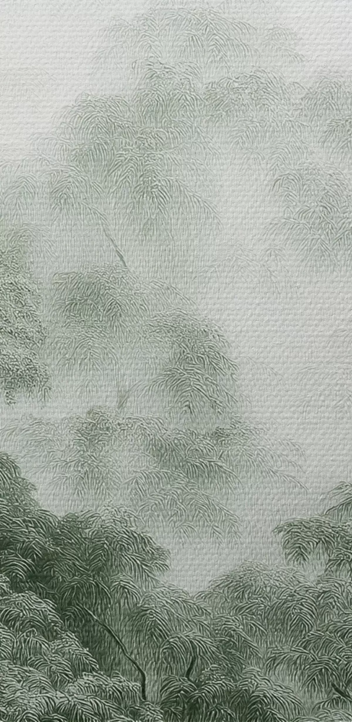 Foto Bosque tropical en la niebla, palmeras, colores verdes Nr r42371