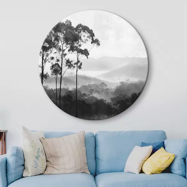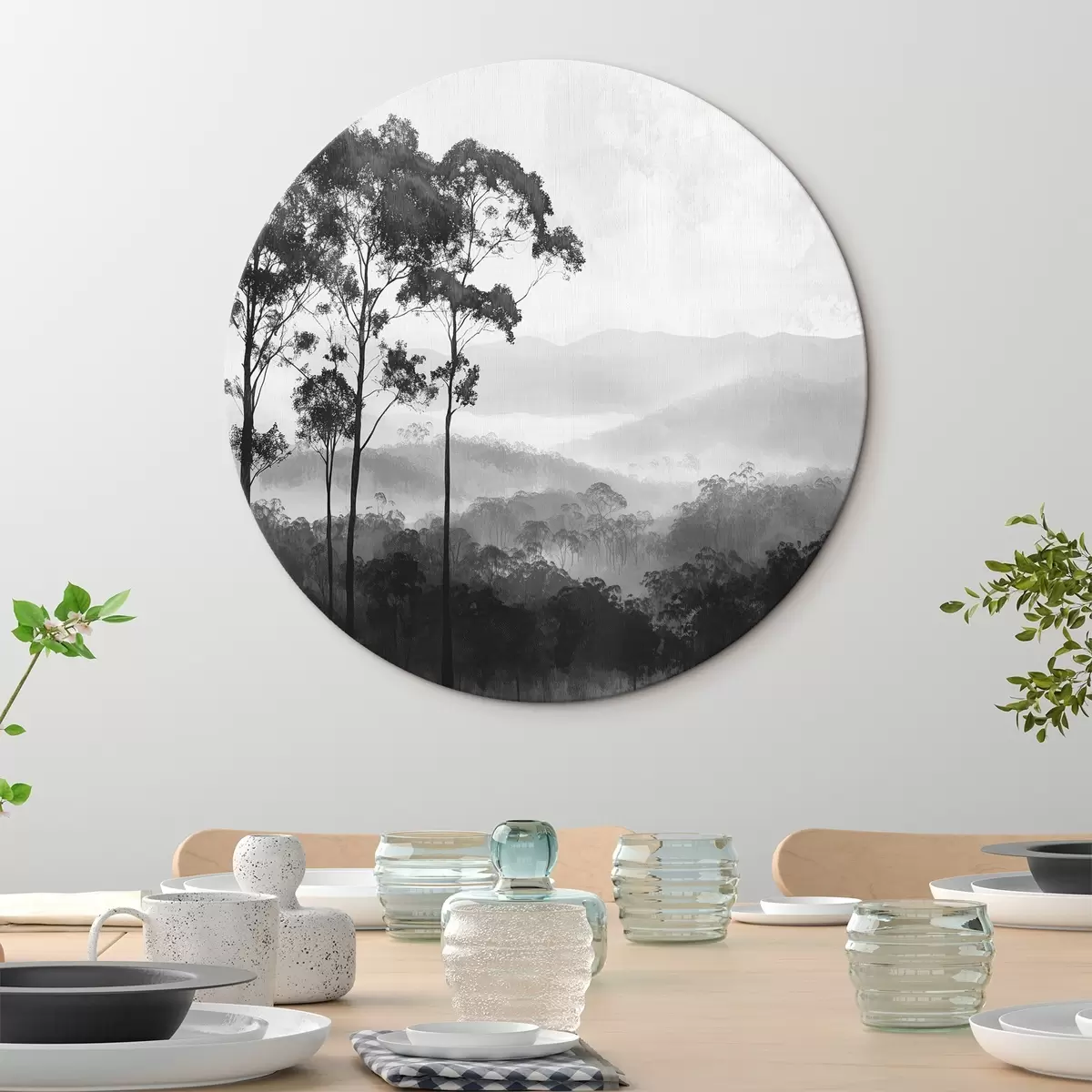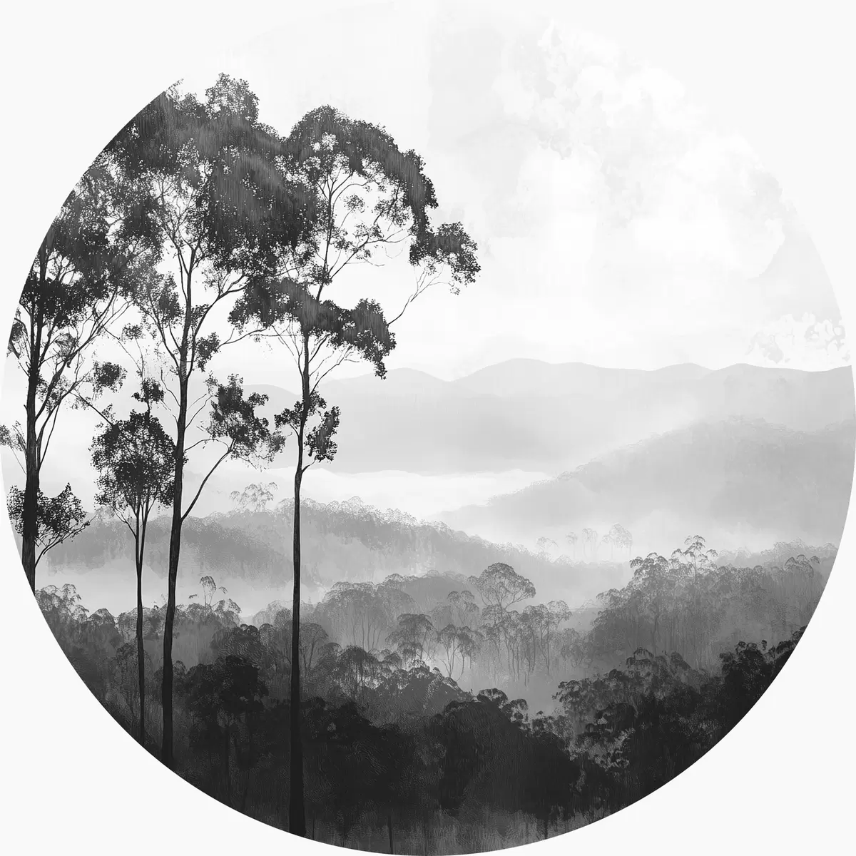 Cuadros redondos Bosque místico en tonos grises, paisaje natural, árboles r42373