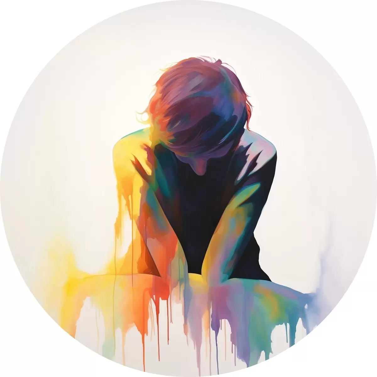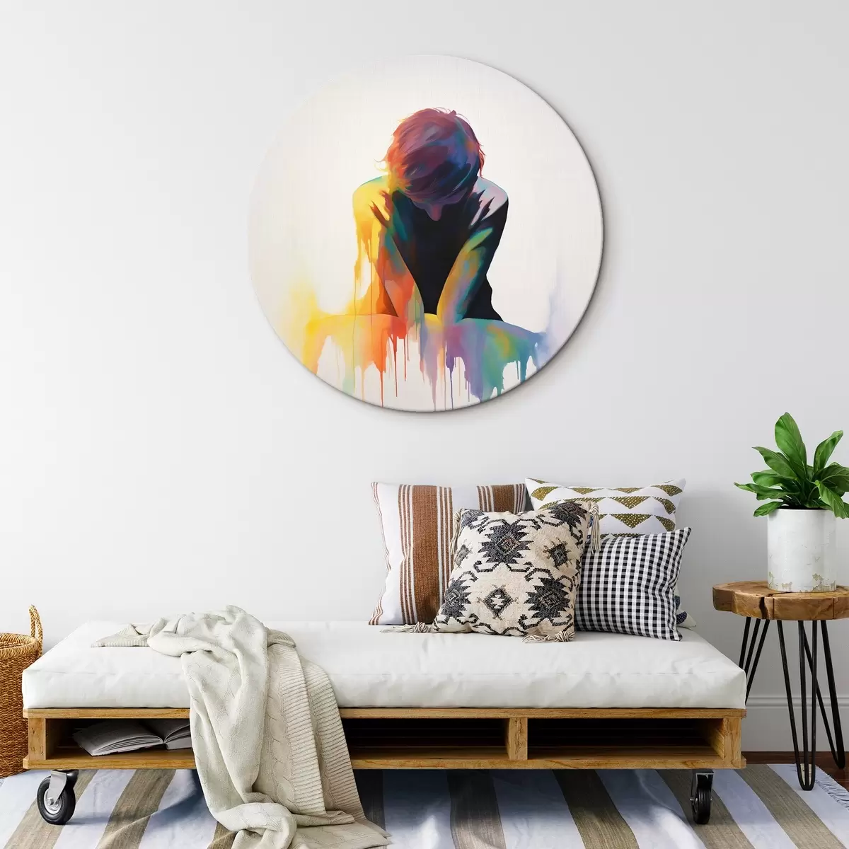 Cuadros redondos Silueta de un chico con pinturas r42381