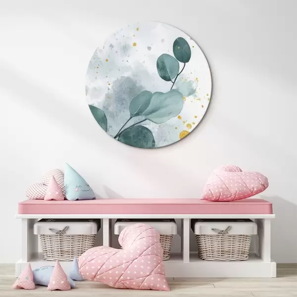 Cuadros redondos Rama de eucalipto sobre un delicado fondo de acuarela r42389