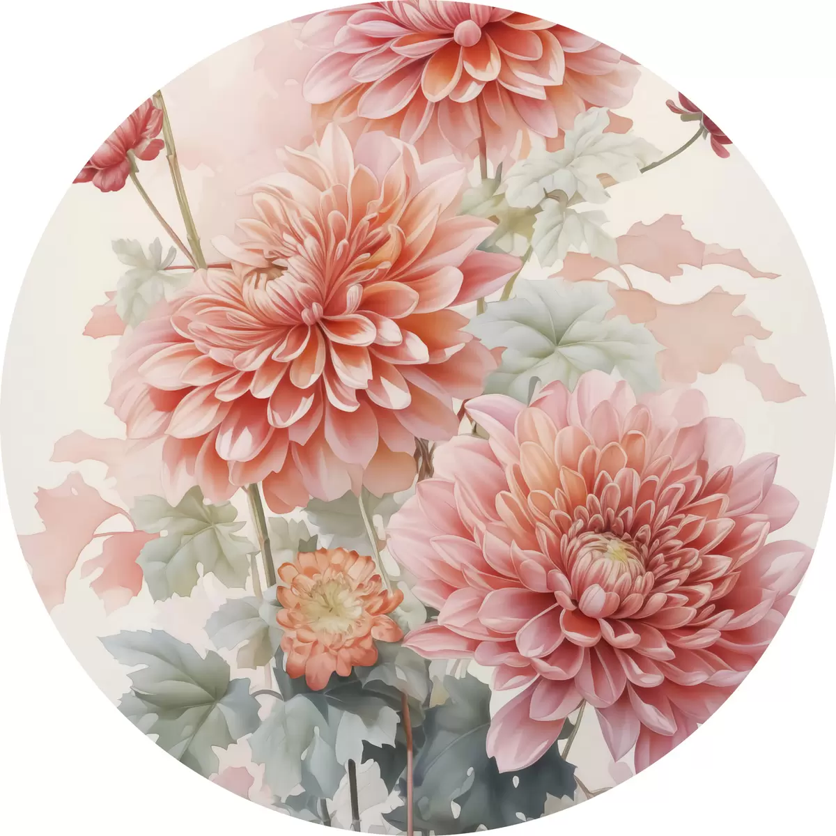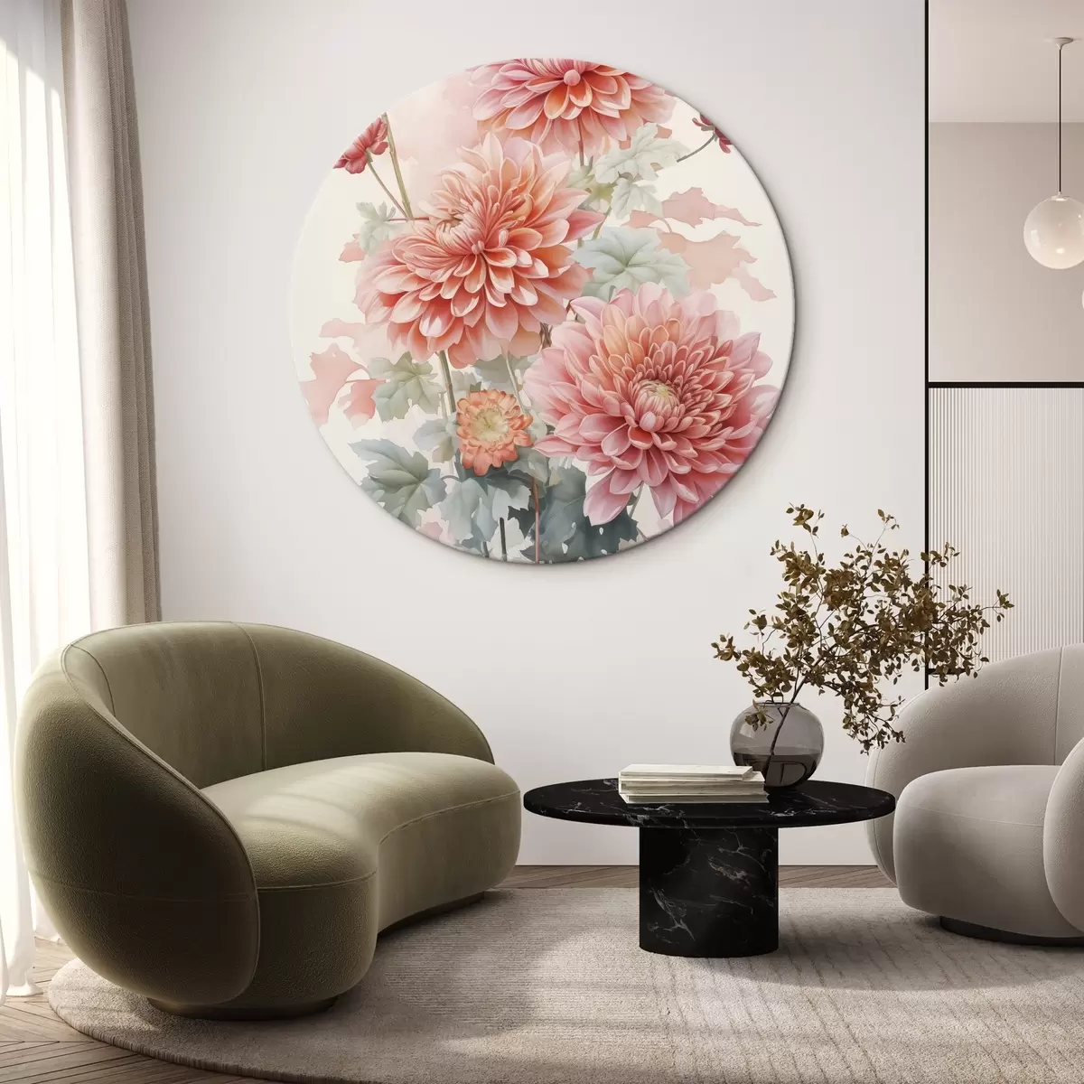 Cuadros redondos Crisantemos imitación acuarela r42416